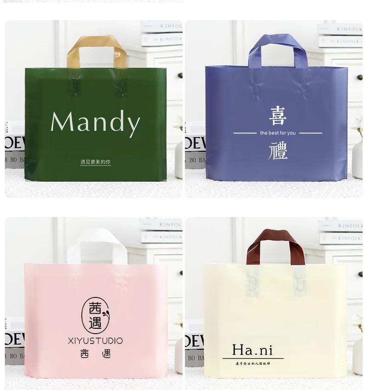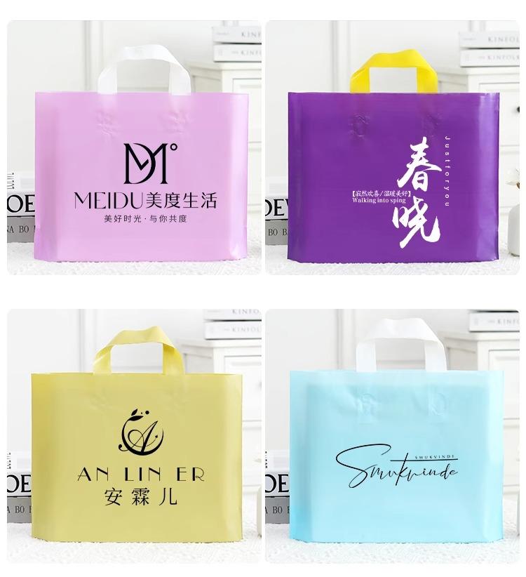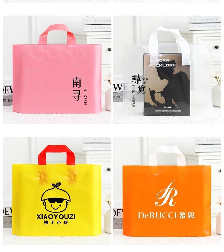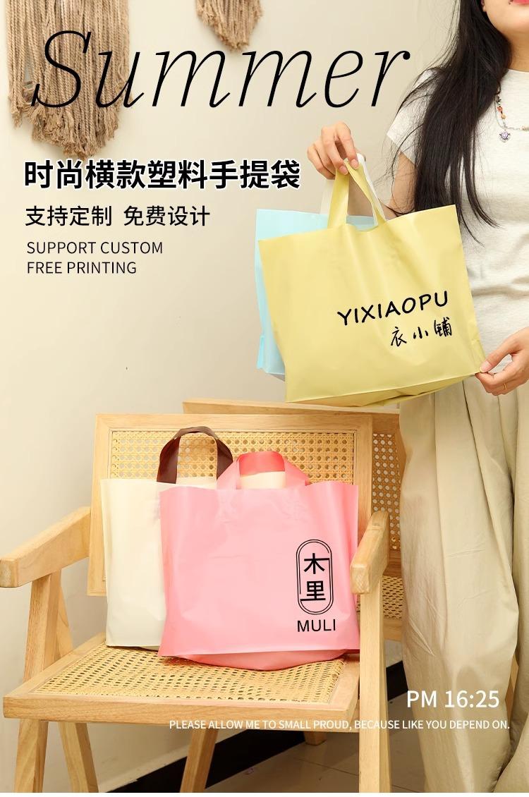 Saco de loja de roupas com bolsa personalizada logotipo impresso roupas femininas compras embalagem saco de presente de plástico feito sob encomenda