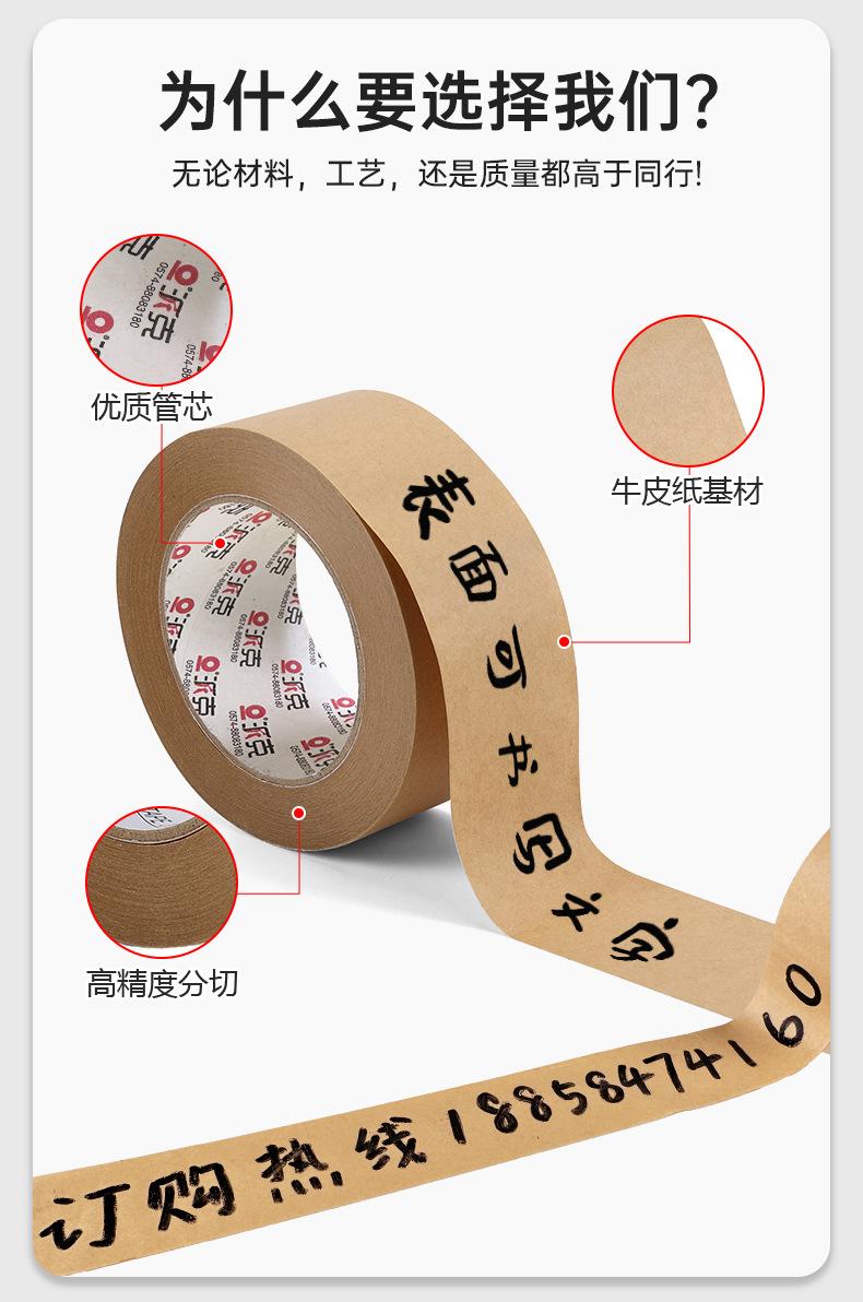 Fita de papel kraft gravável e rasgável à mão, fita de alta viscosidade, pasta marrom, caixa de mudança, marca de remessa, fita de embalagem de caixa de vedação
