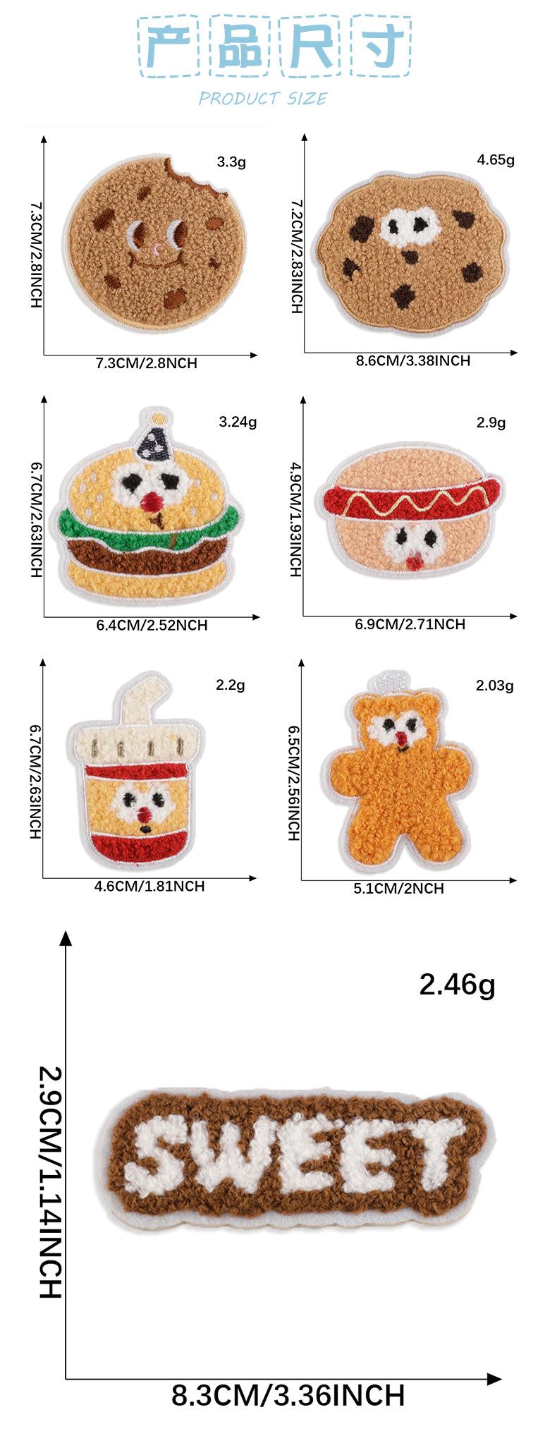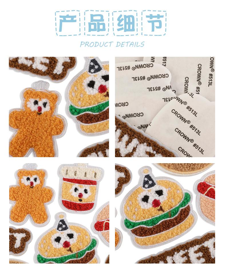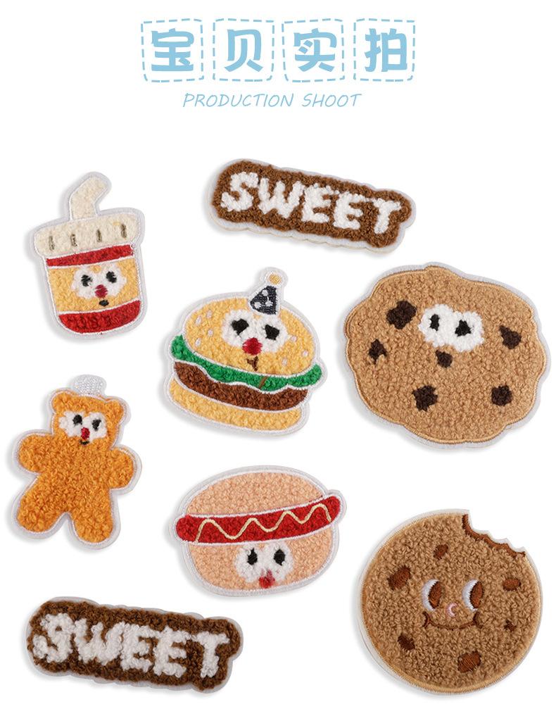 Toalha original de morango bordado comida brincar hambúrguer batata frita bordado adesivo chenille acessórios autoadesivo remendo pano adesivo