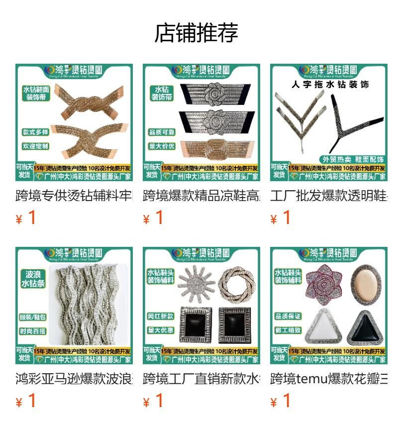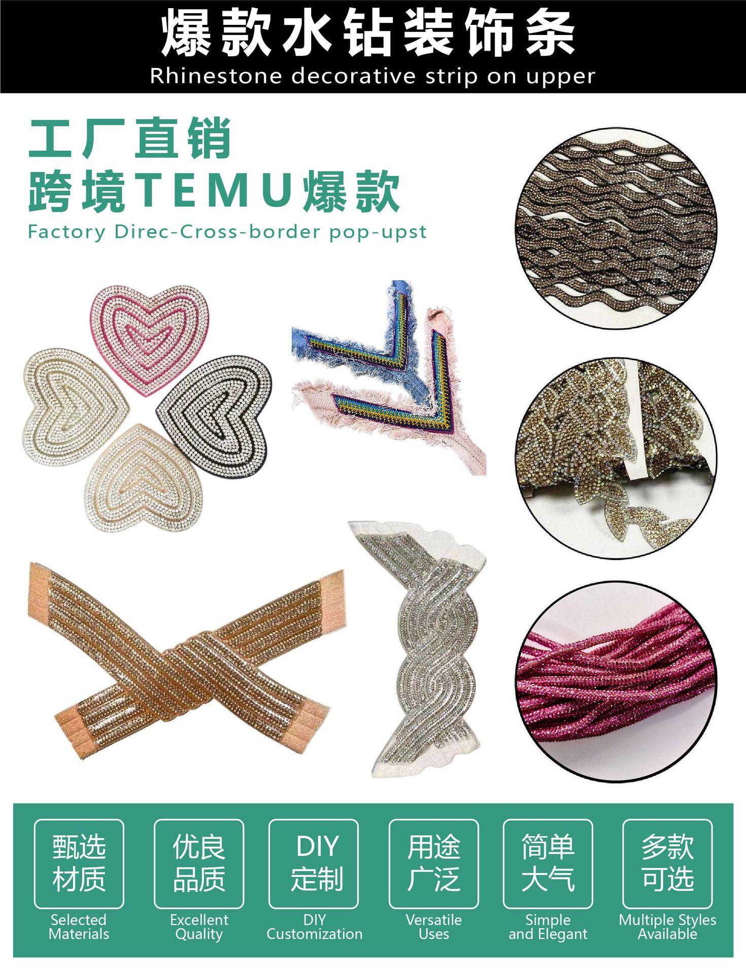 Hongcai Tira de Strass de Folha de Formato Especial Adesivo Hot-Melt Adesivos de Diamante para Sapatos e Bolsas Renda Corrente de Diamantes Atacado Acessórios de Vestuário Diamantes Quentes