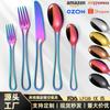 Faca e garfo de aço inoxidável, colher de sobremesa, talheres, grão de pedra, cabo quadrado, faca para bife, garfo, colher de jantar, estilo ocidental, conjunto doméstico de talheres