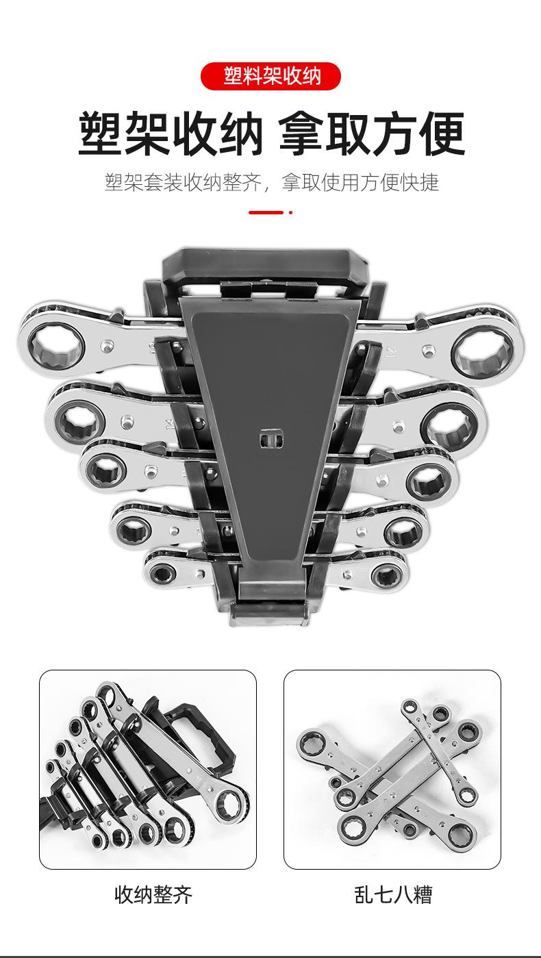 Conjunto de chaves de soquete de anel aberto com cabo reto, conjunto de catraca de dupla finalidade, conjunto completo de ferramentas de chave de reparo automotivo, caixa