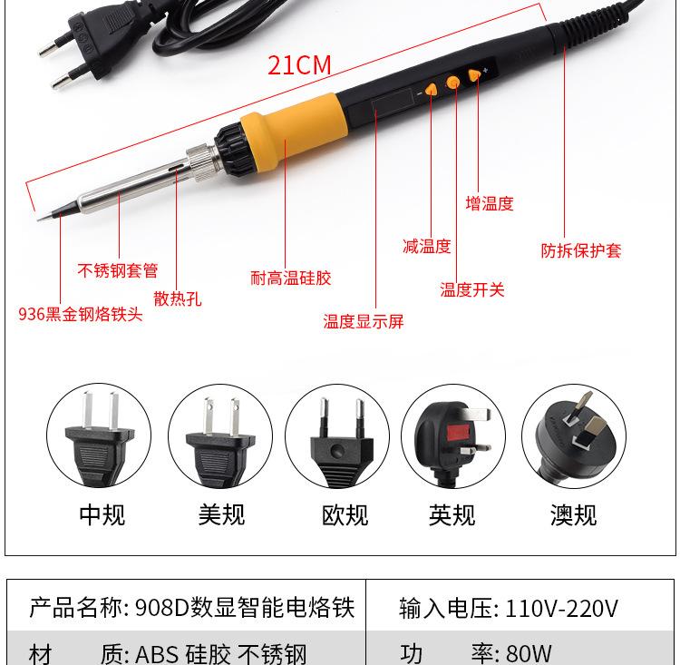 Medium blue 908d soldering iron 80w, European standard blue 908d soldering iron 80w, American standard blue 90...