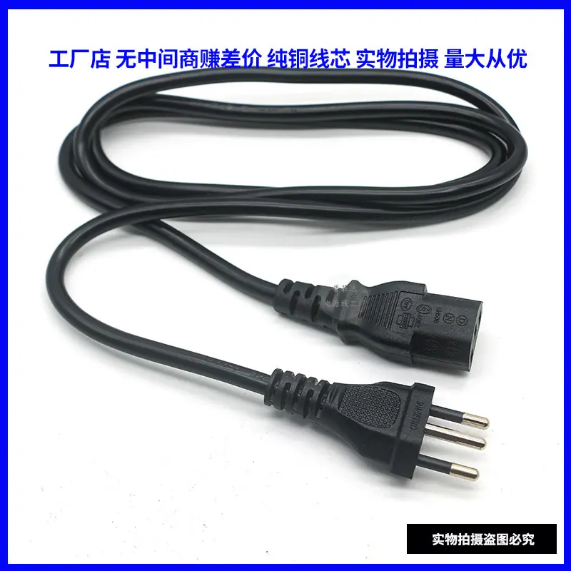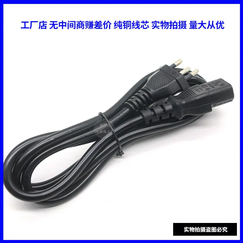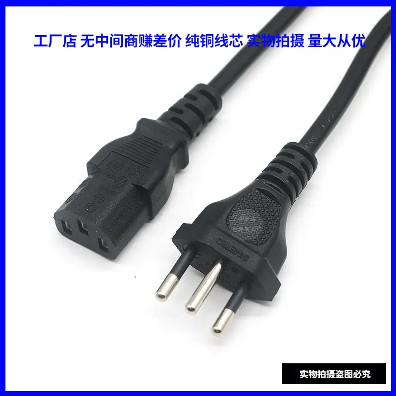 Cabo de Alimentação Brasileiro de Três Pinos com Certificação CE e um Sufixo, Adequado para Mainframe e Monitor, Núcleo de Cobre Puro de 0,75/1 Milímetro Quadrado, Todo em Cobre