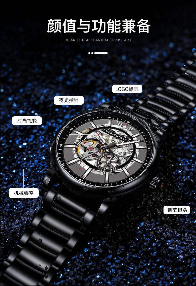 Marca Suíça Relógio Popular Masculino Relógio Mecânico Totalmente Automático À Prova d'Água Luminoso Transmissão ao Vivo Comércio Exterior Dropshipping