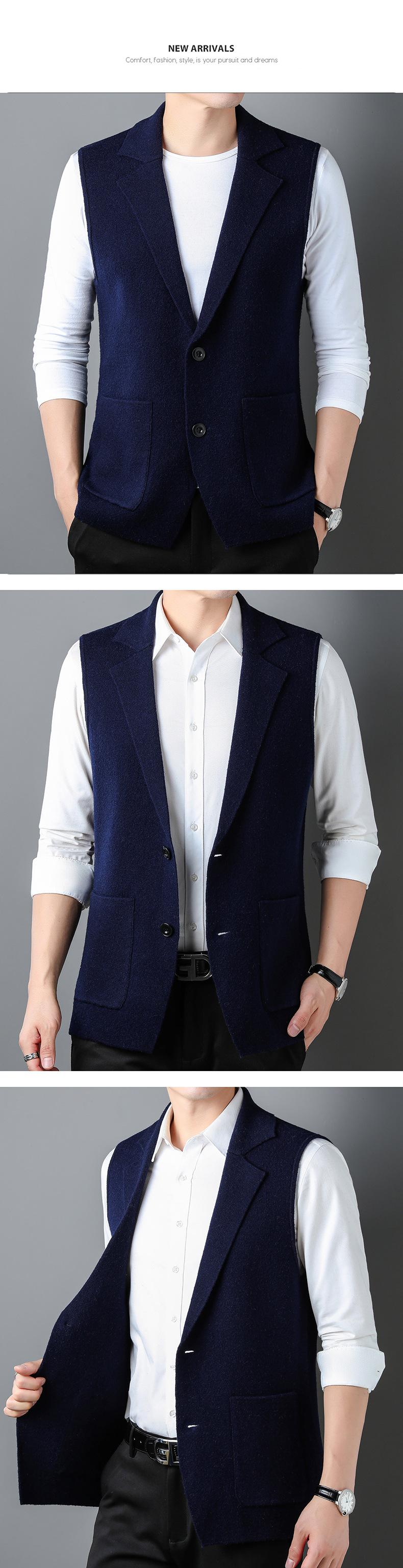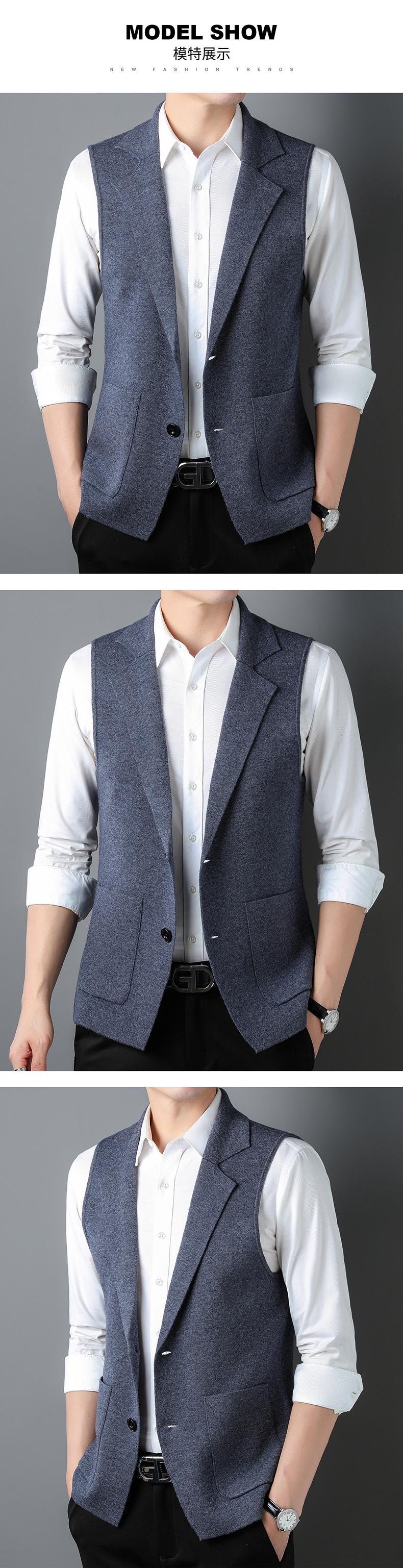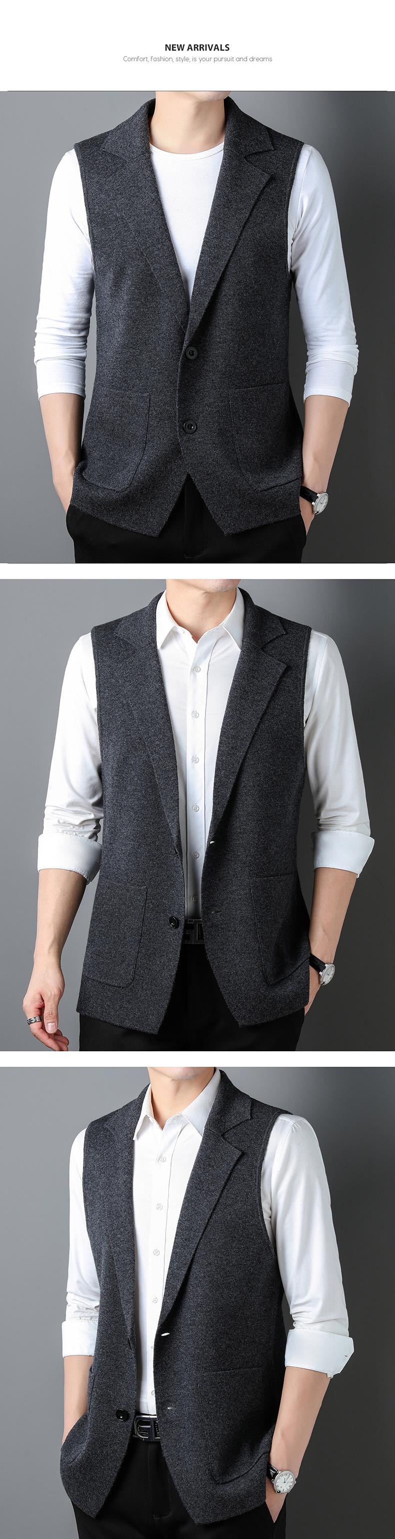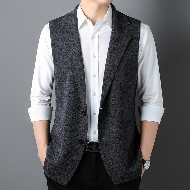 Colete Masculino Novo Sem Mangas Cardigã Completo Cor Sólida Cardigã Espesso Outono Moderno Meia-Idade Suéter Externo Atacado