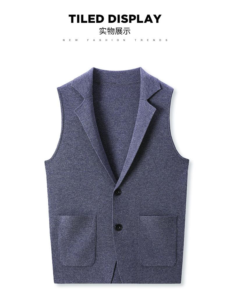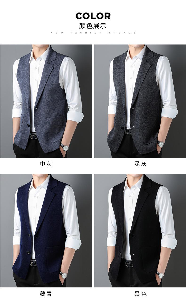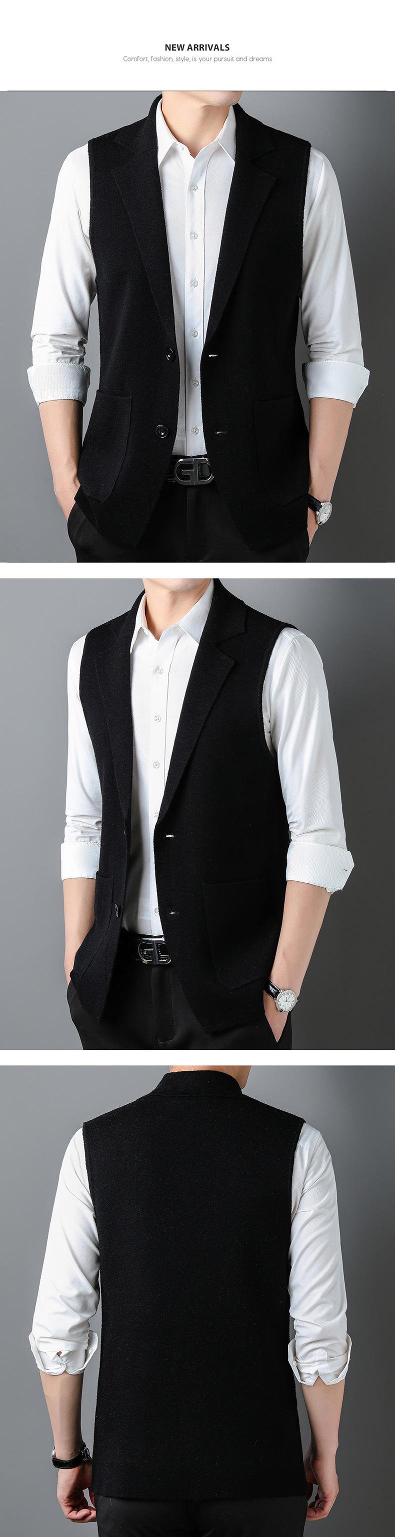 Colete Masculino Novo Sem Mangas Cardigã Completo Cor Sólida Cardigã Espesso Outono Moderno Meia-Idade Suéter Externo Atacado