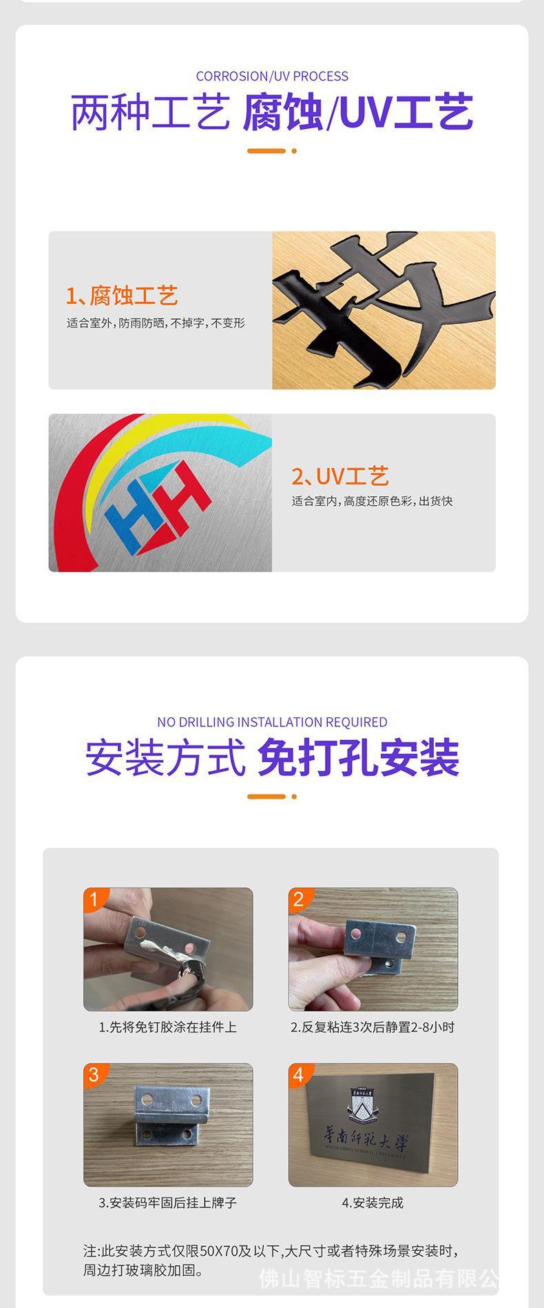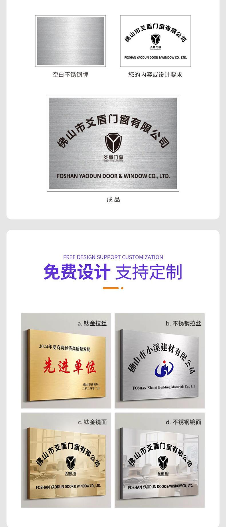 Placa com Nome da Empresa Aço Inoxidável Bronze Sinal Fábrica Marca Placa de Autorização da Empresa Placa de Identificação Sinalização Publicitária UV Personalização