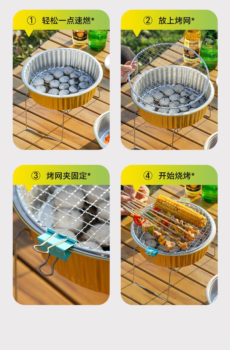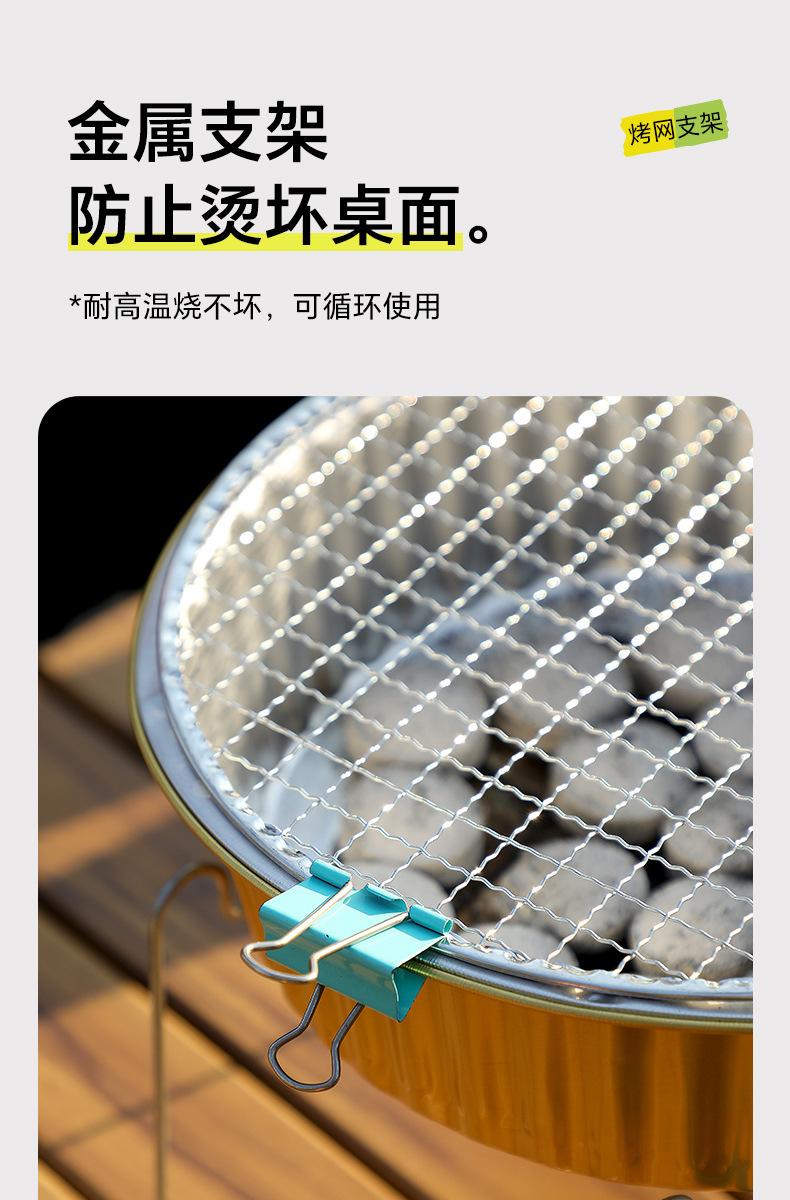 [medium set] tinfoil plate + bbq mesh + stand + 30 pieces of fruit charcoal + food clip + oil brush, [medium s...