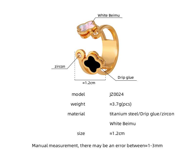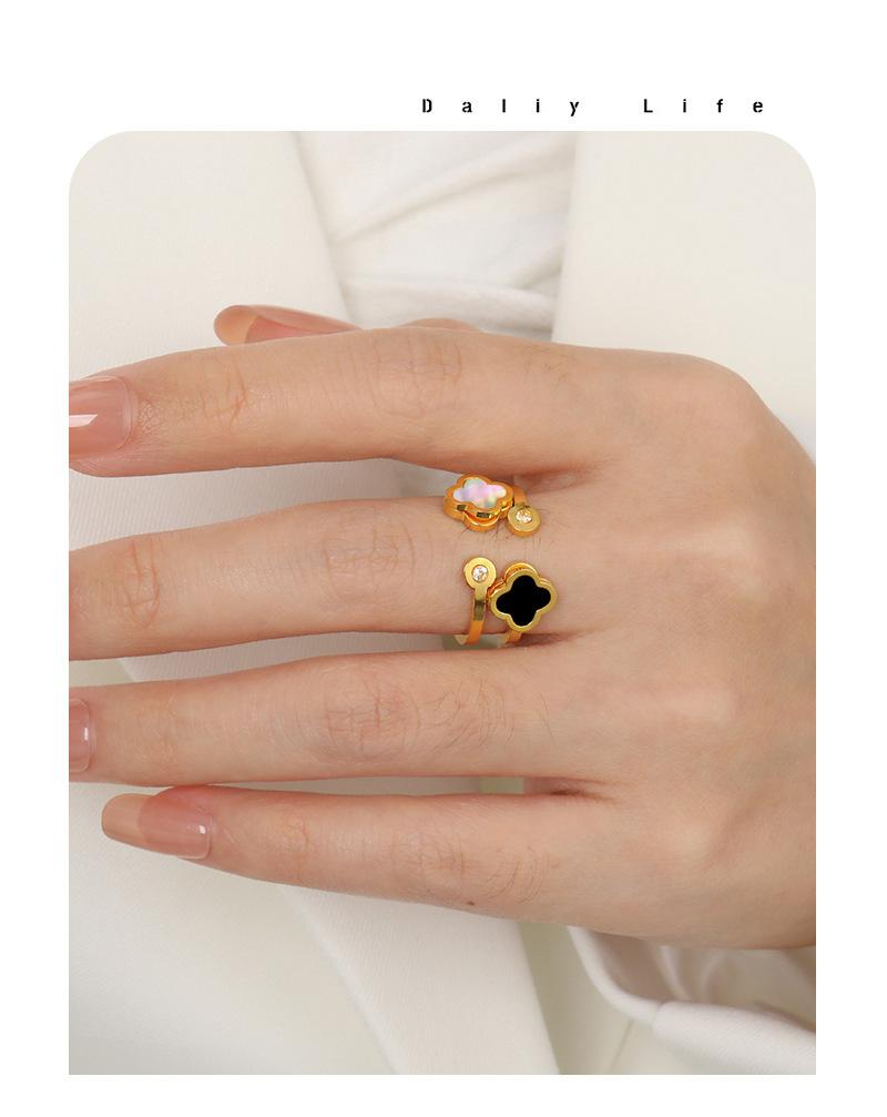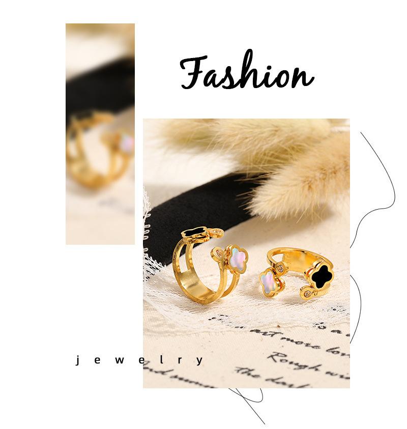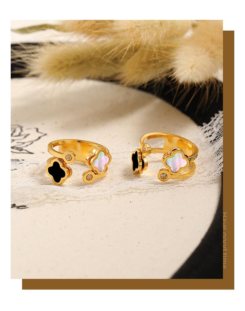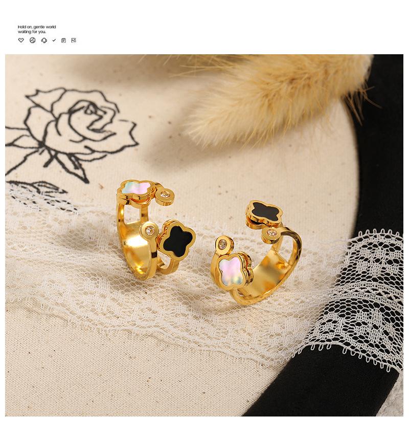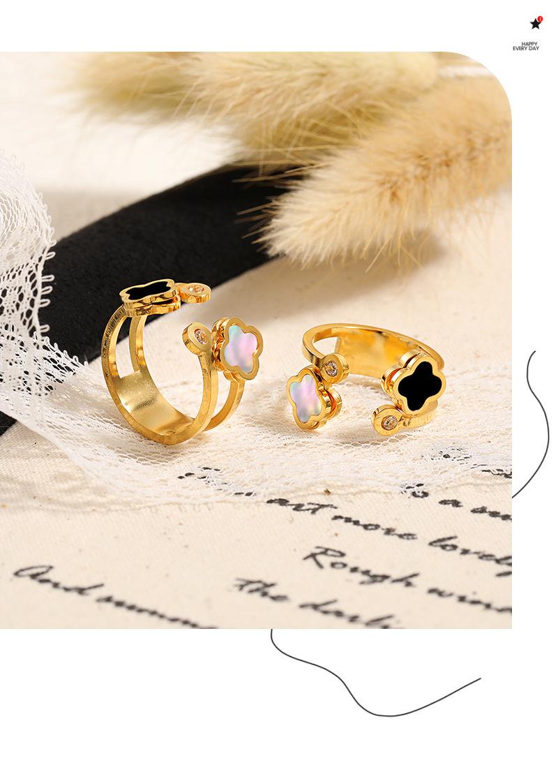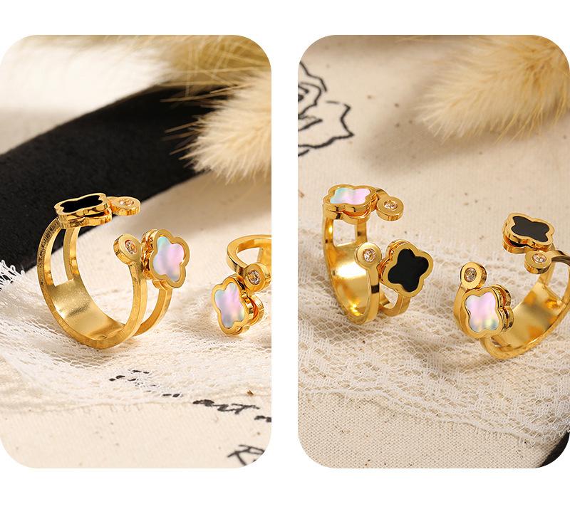 Compre Anel de fritillaria natural de trevo de quatro folhas oco, leve e luxuoso, estilo coreano, com abertura personalizada e ajustável, em aço de titânio no atacado no Joom.pro