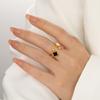 Anel de fritillaria natural de trevo de quatro folhas oco, leve e luxuoso, estilo coreano, com abertura personalizada e ajustável, em aço de titânio