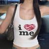 Moda quente transfronteiriça verão e outono estilo boate europeu e americano impressão de letras slim-fit feminino curto umbigo pequeno colete