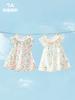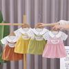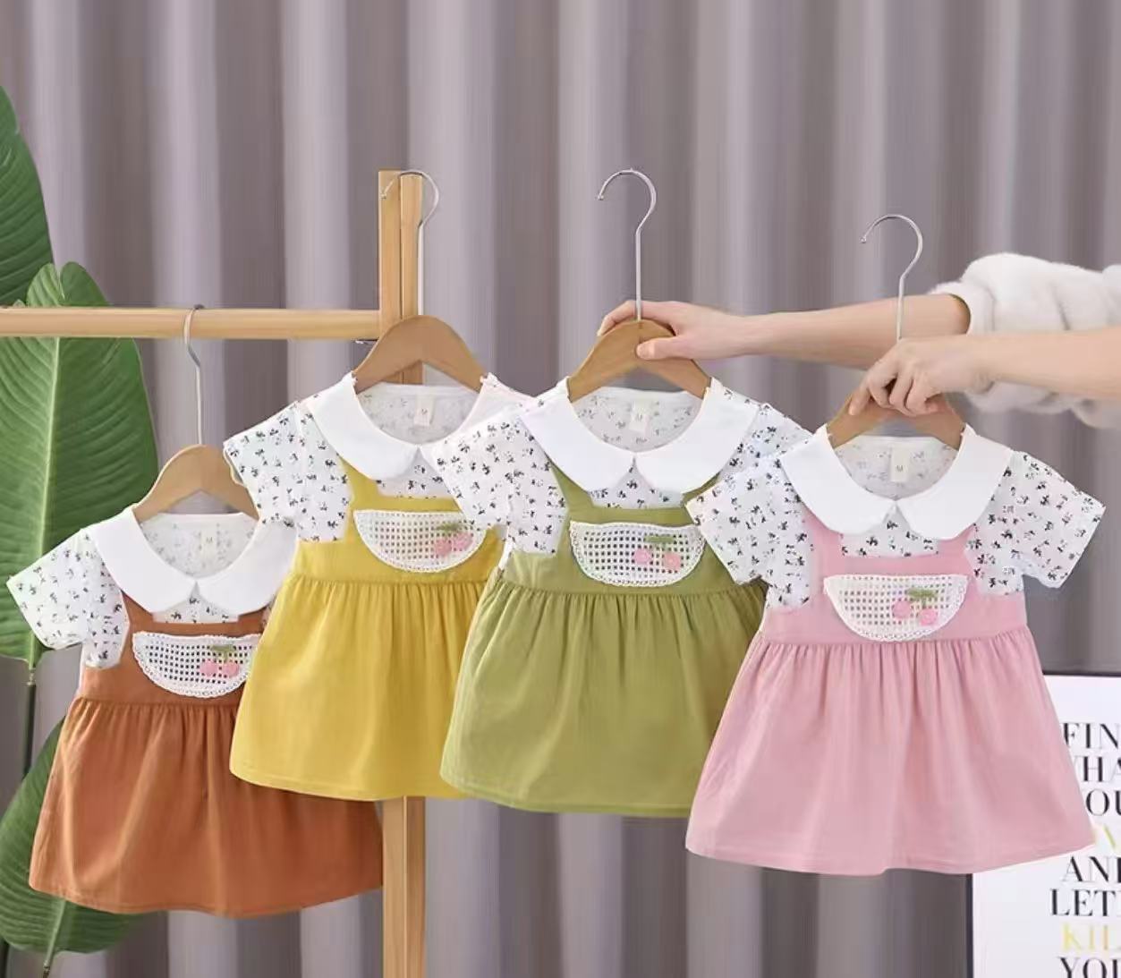Vestido de Princesa Falso de Duas Peças 2025 para Crianças e Meninas Verão Manga Curta Saia Fofa de Bolinhas Renda Saia Doce Coração