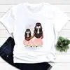 Camiseta feminina de outono europeia e americana, nova estampa de amor, moda casual, manga curta