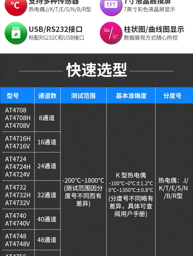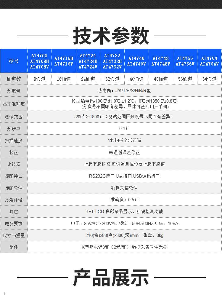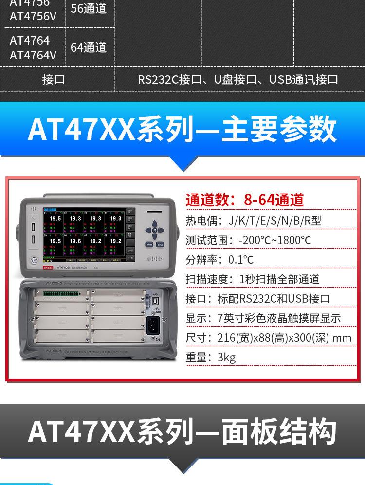 Série Amber AT47XX - testador de temperatura multicanal de 8 a 64 canais com função de detecção de casal quebrado