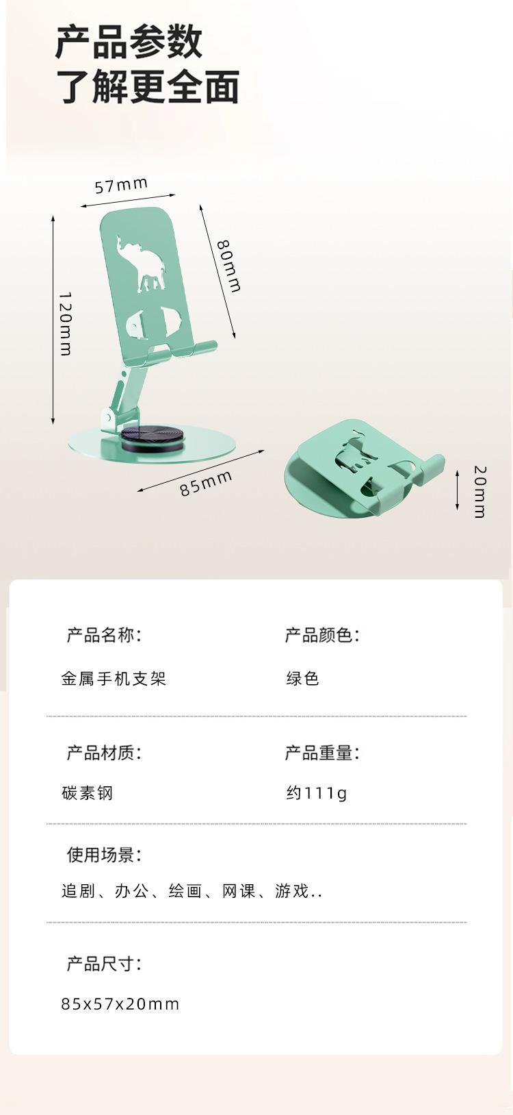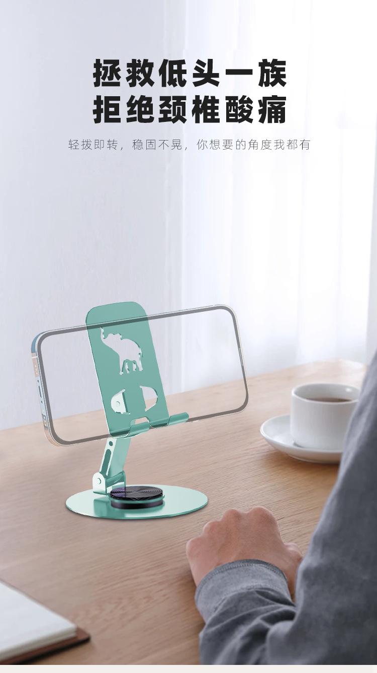 Suporte de mesa para celular de material metálico especial para pessoa preguiçosa formato de elefante verde dobrável rotação 360 graus