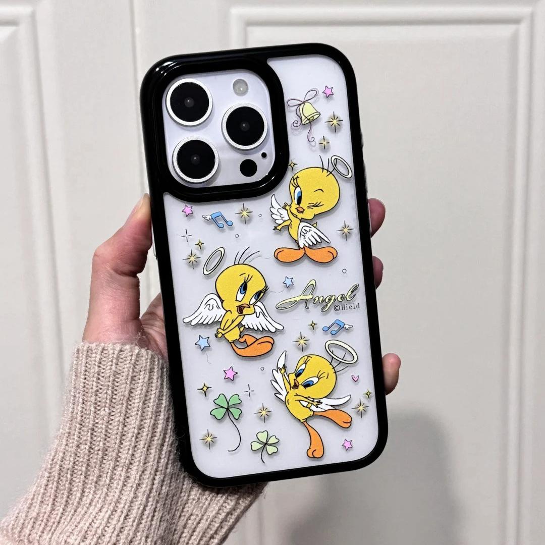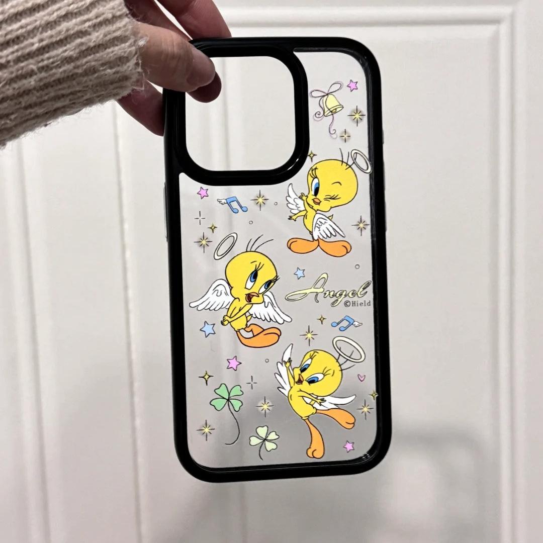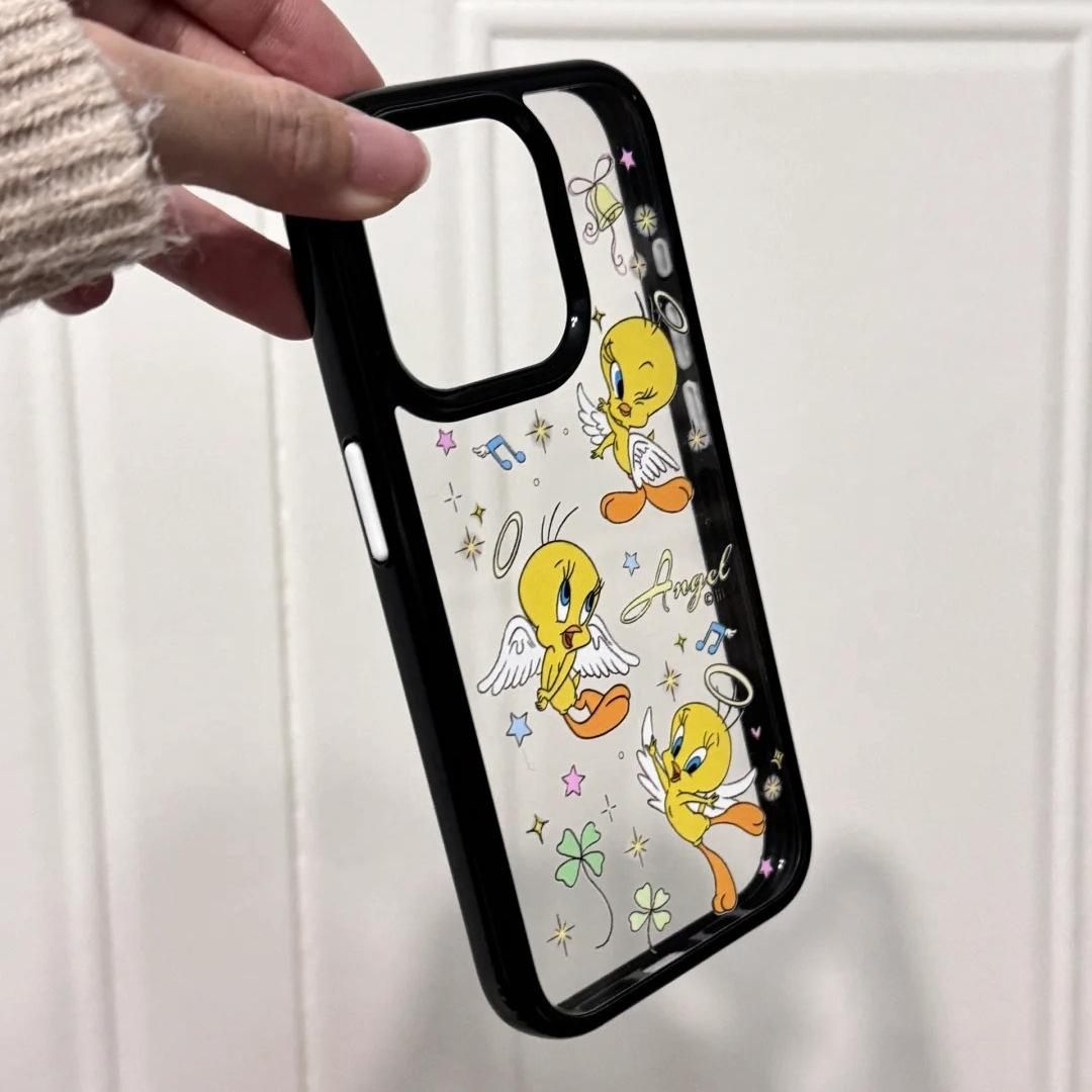 Capa protetora de pássaro anjo fofo para Apple 16promax iPhone15 capa transparente 14/13/11