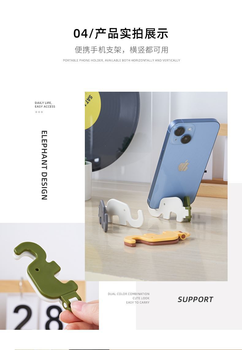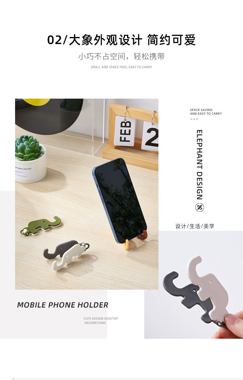 Suporte para celular portátil dobrável transfronteiriço em formato de elefante preguiçoso com desenho animado mini suporte para celular