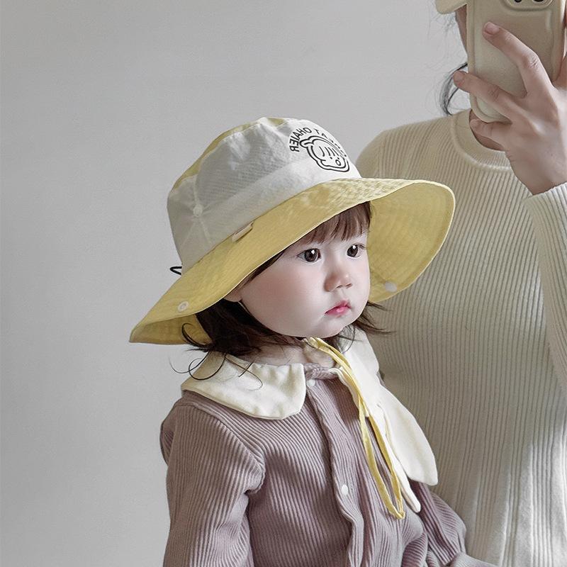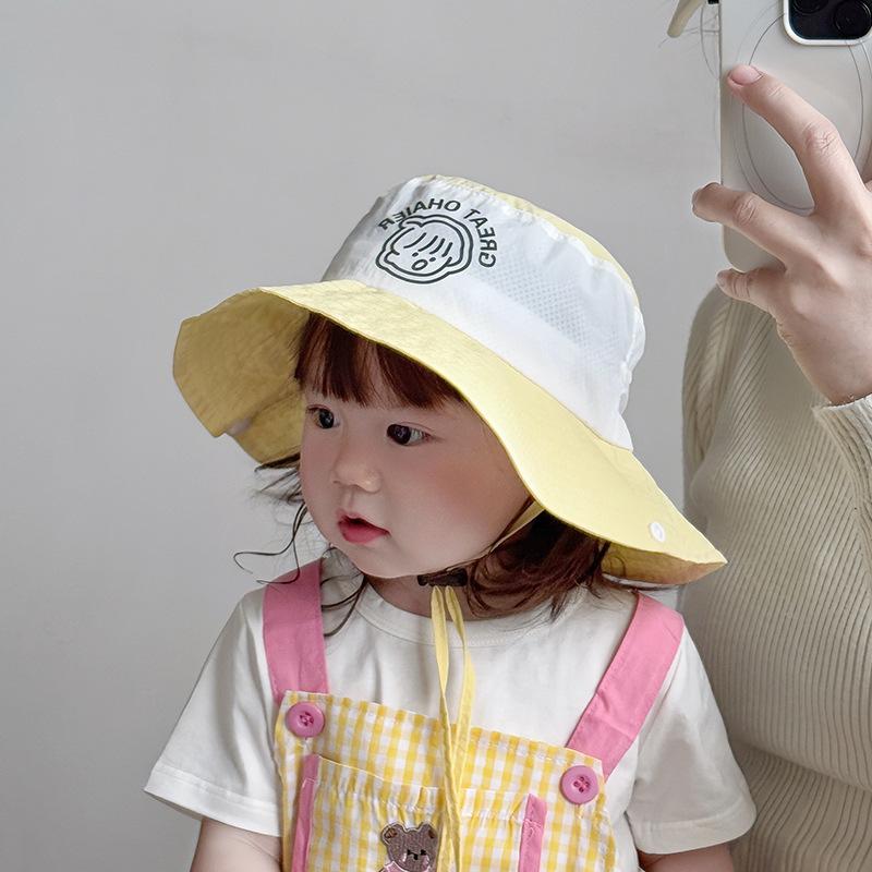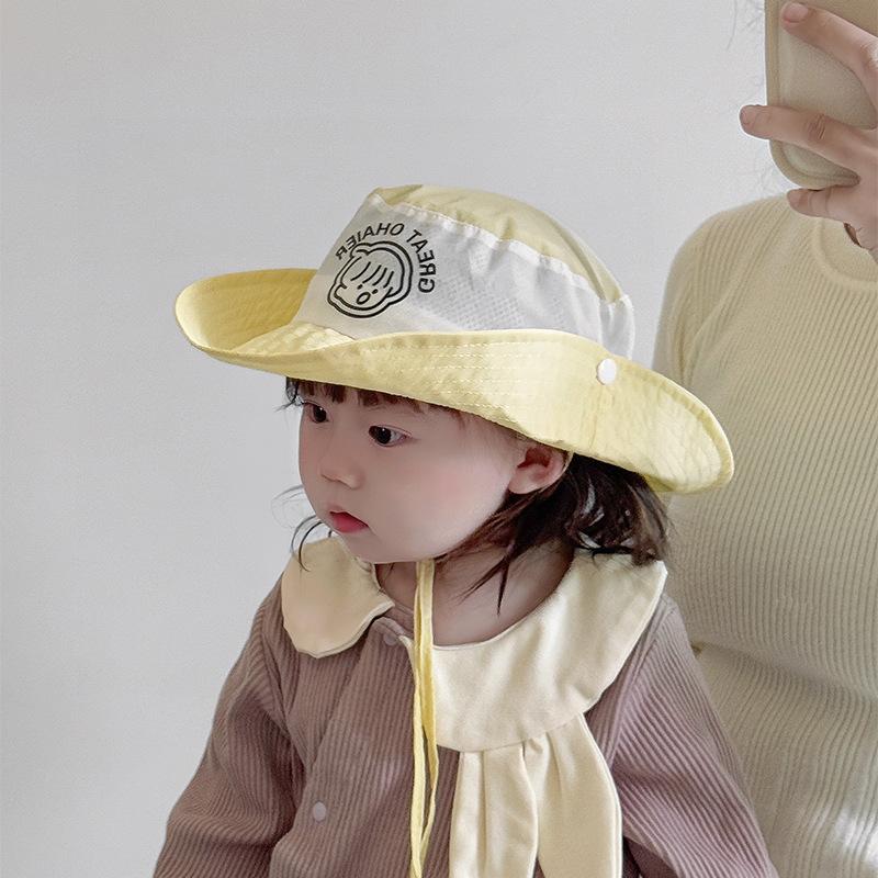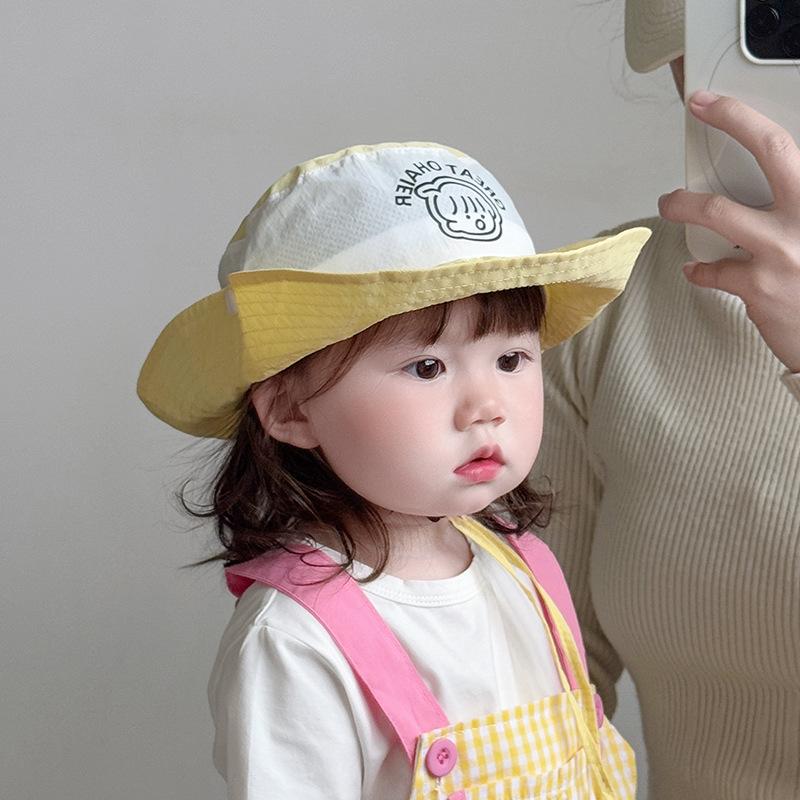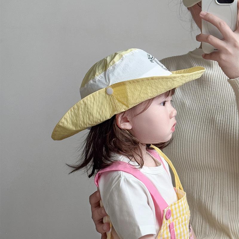 Chapéu de bebê primavera e verão fino de secagem rápida respirável chapéu de pescador chapéu de viagem para meninos e meninas chapéu de proteção solar de aba grande chapéu de guarda-sol estilo coreano