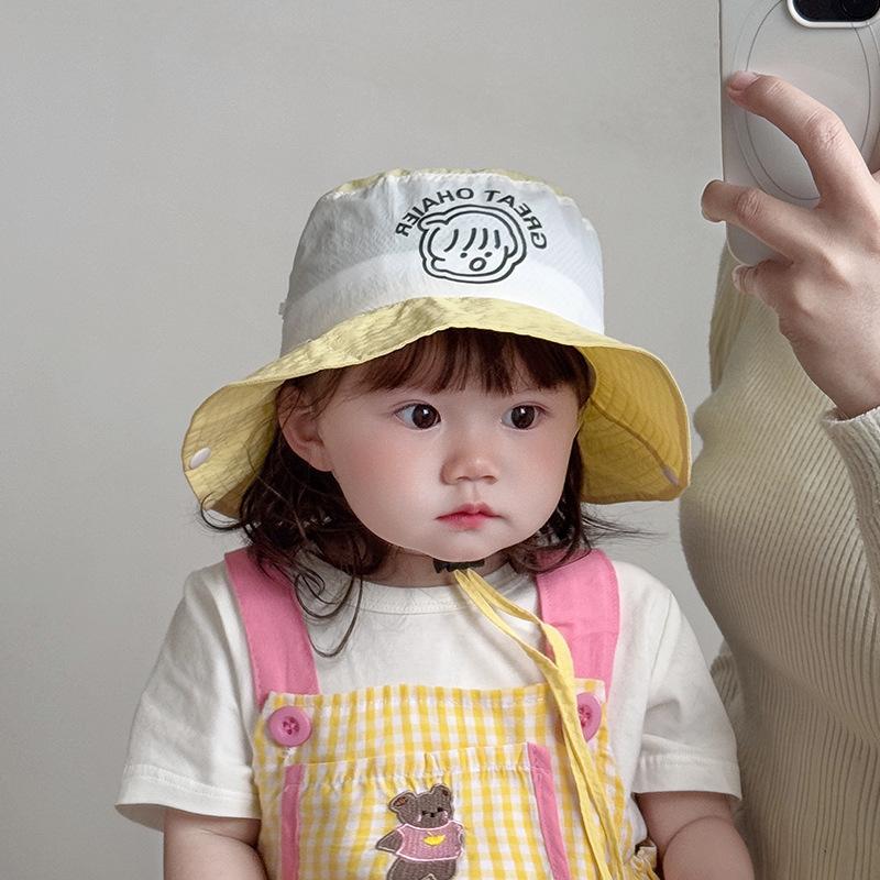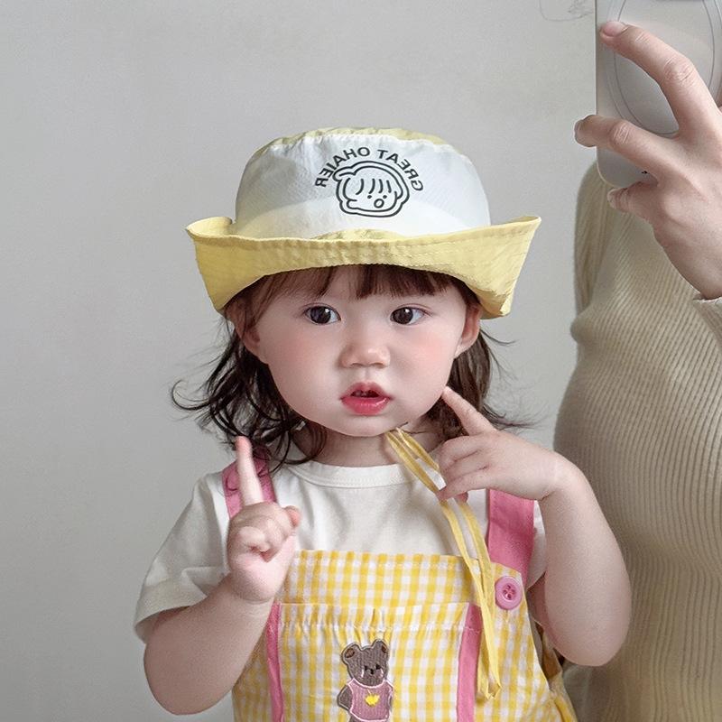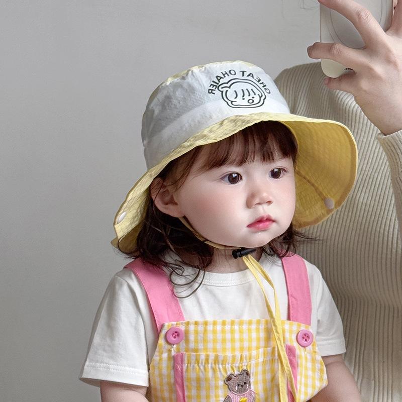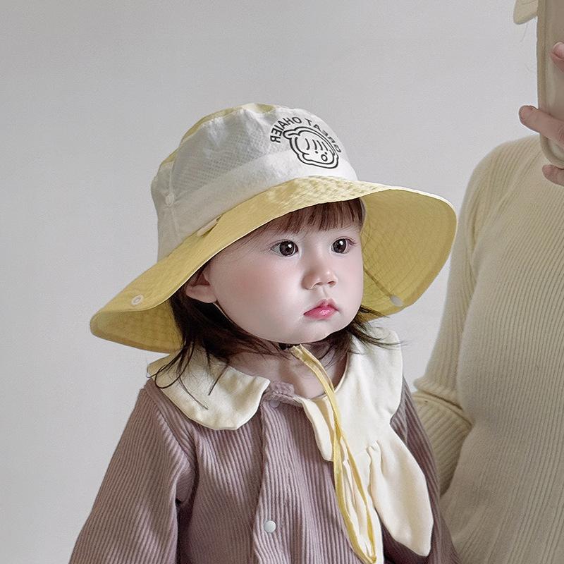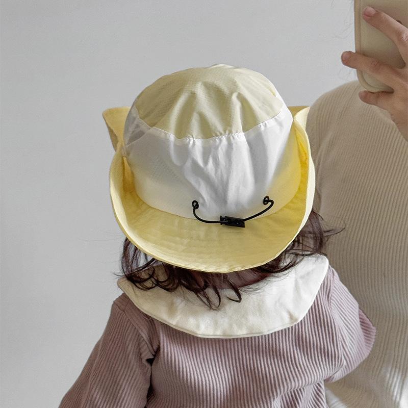 Chapéu de bebê primavera e verão fino de secagem rápida respirável chapéu de pescador chapéu de viagem para meninos e meninas chapéu de proteção solar de aba grande chapéu de guarda-sol estilo coreano