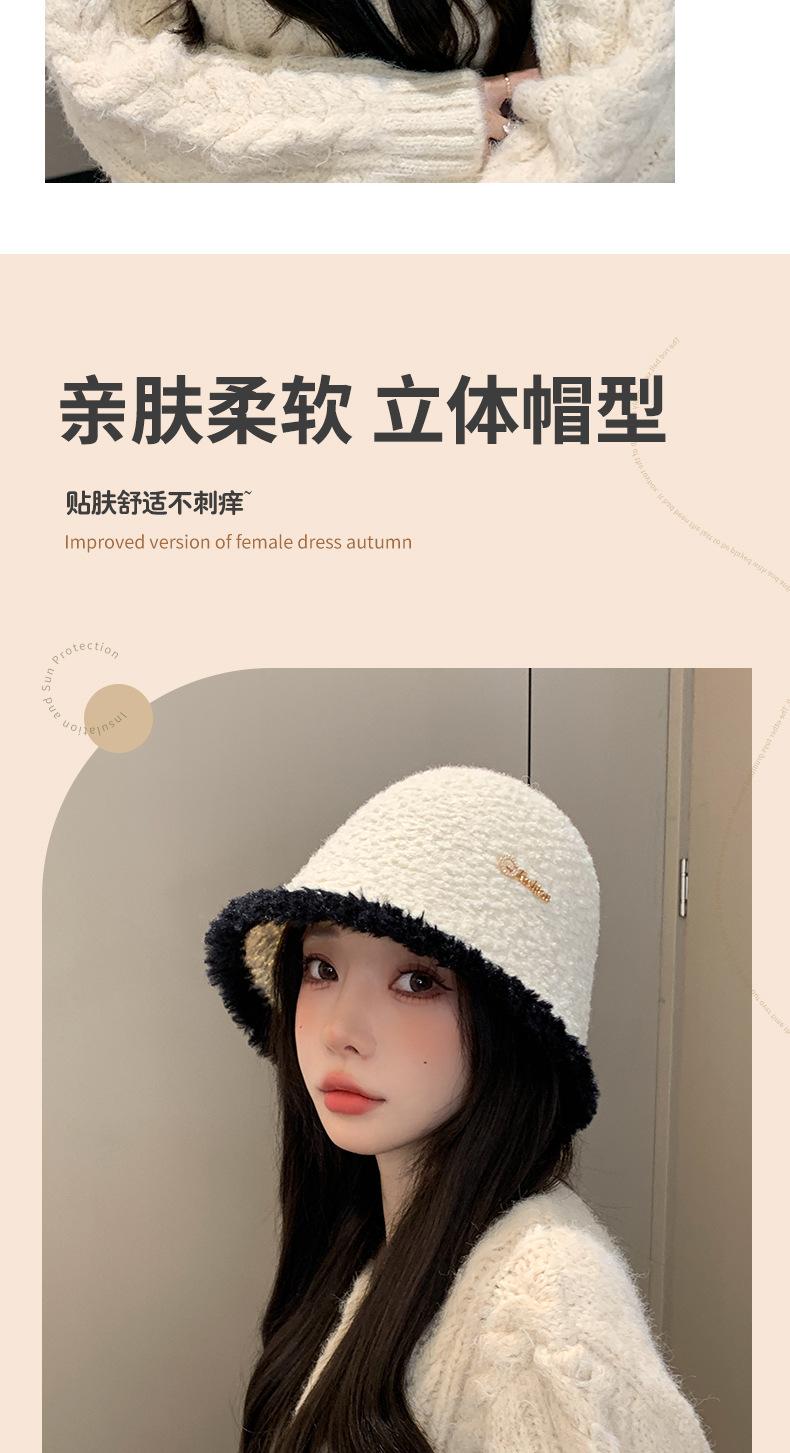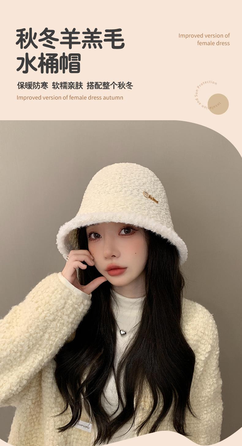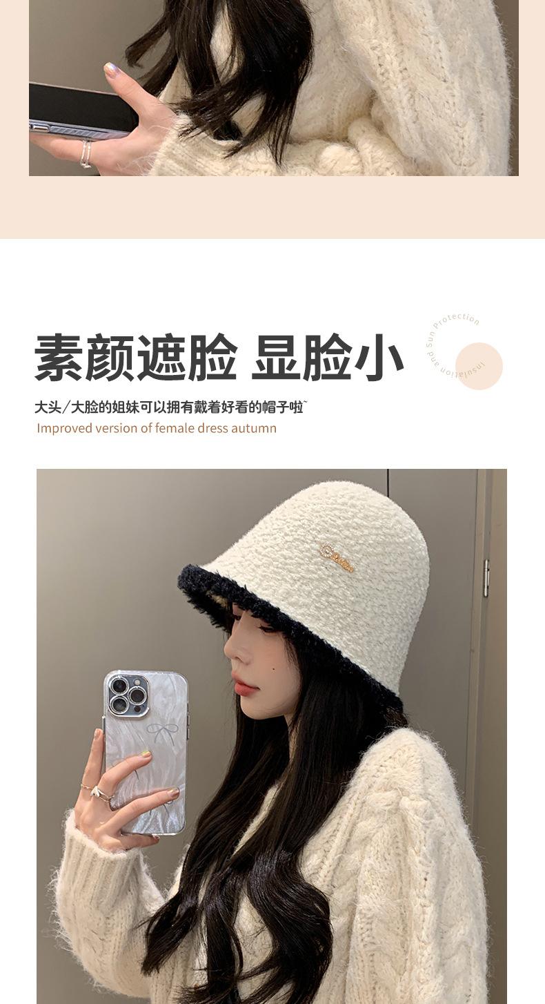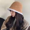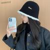 Novo chapéu feminino inverno pescador outono e inverno chapéu estilo japonês versátil rosto-mostrando pequeno engrossado quente pelúcia bacia chapéu na moda