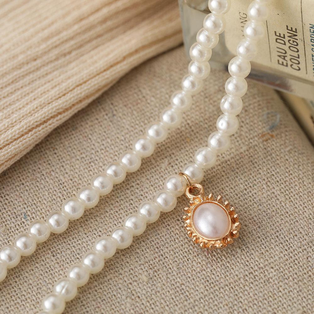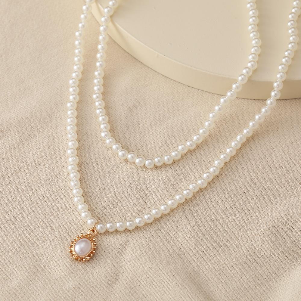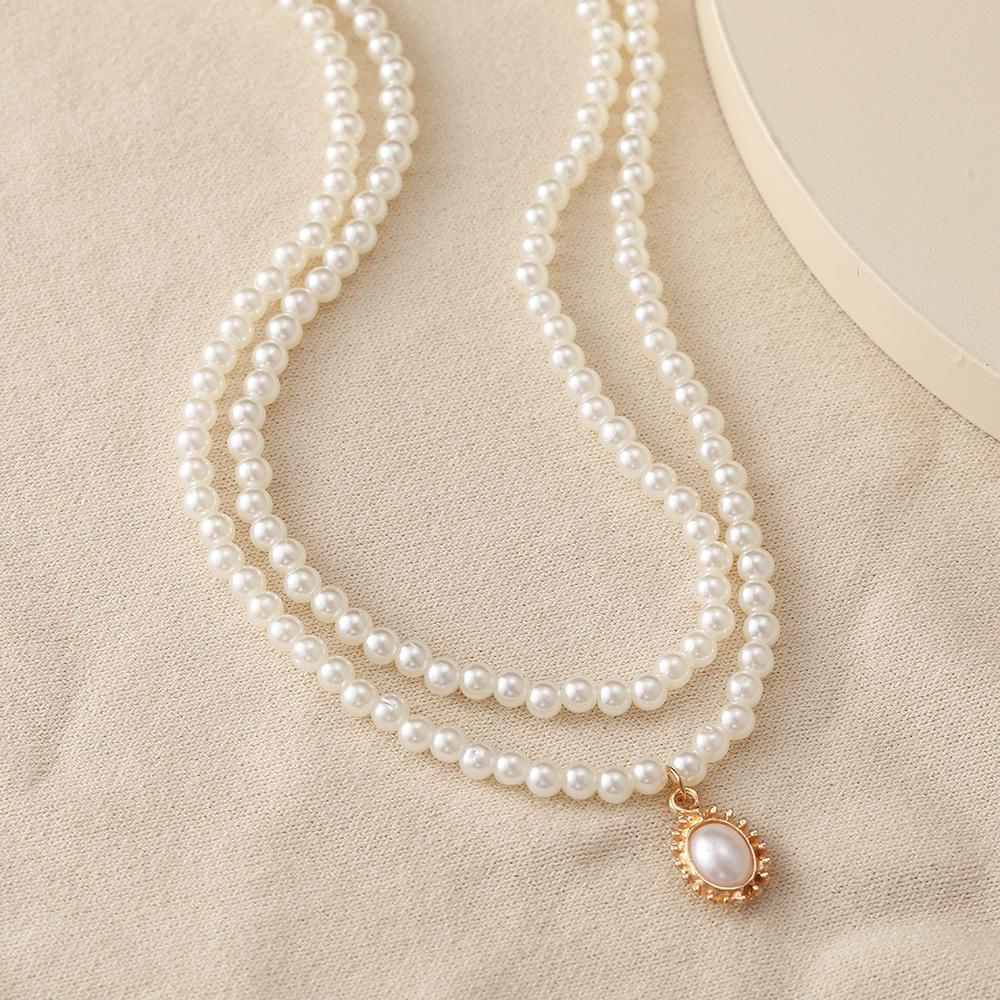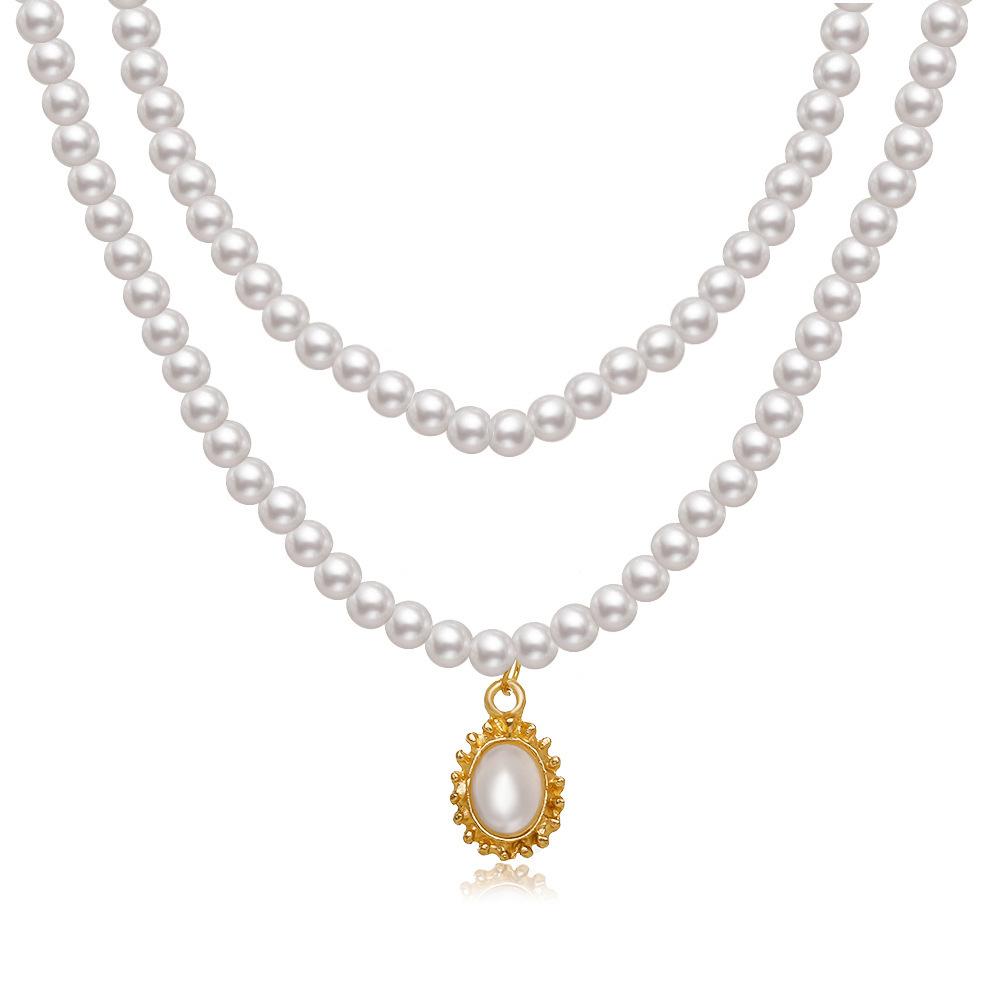 Novo estilo barroco vintage estilo tribunal pérola pingente clavícula corrente temperamento criativo dupla camada colar de pérolas atacado