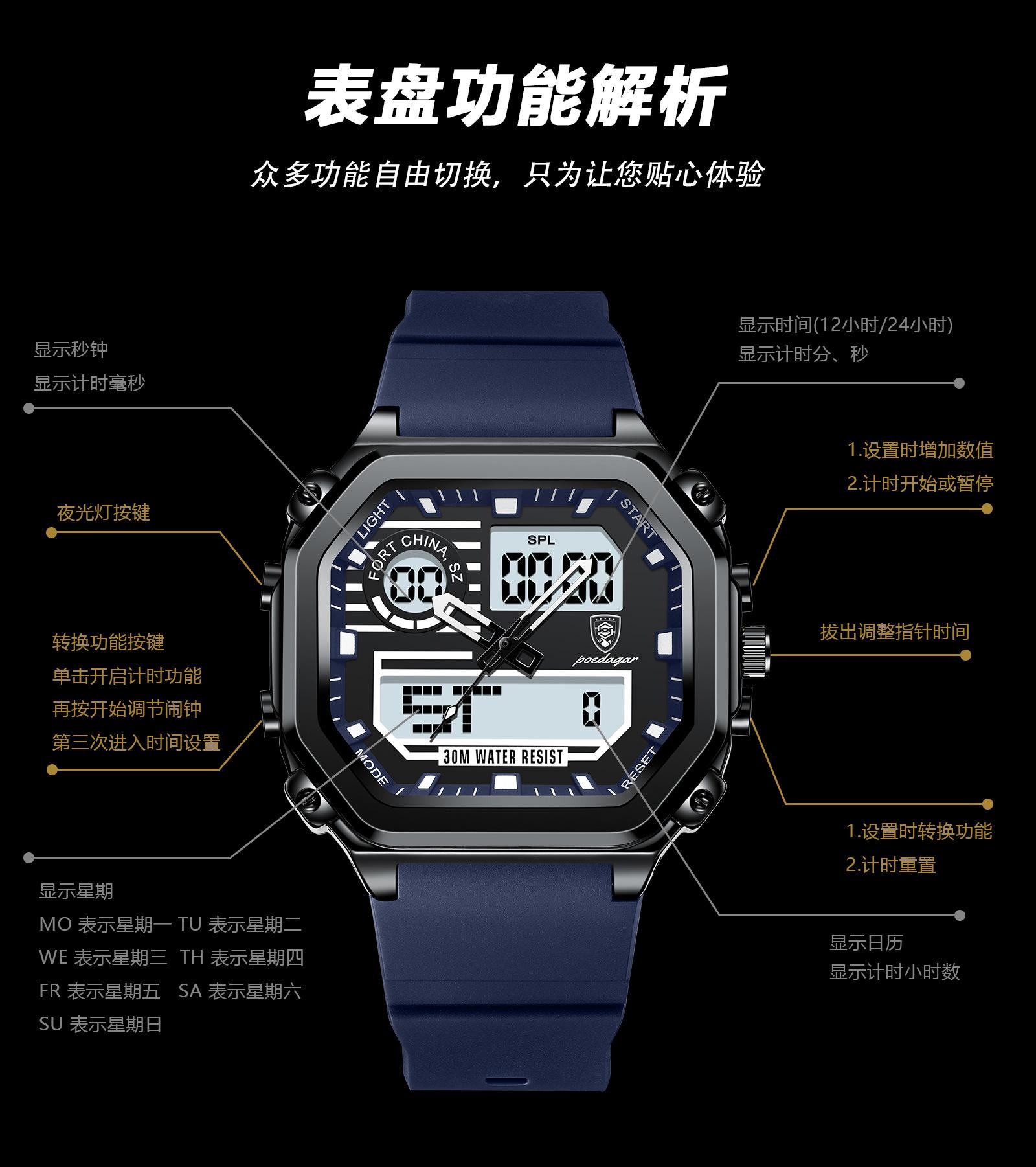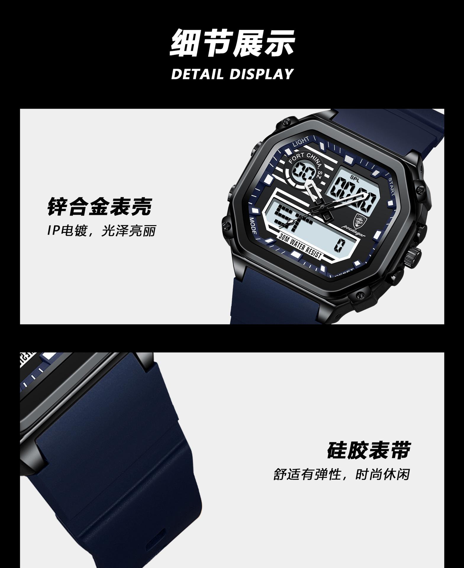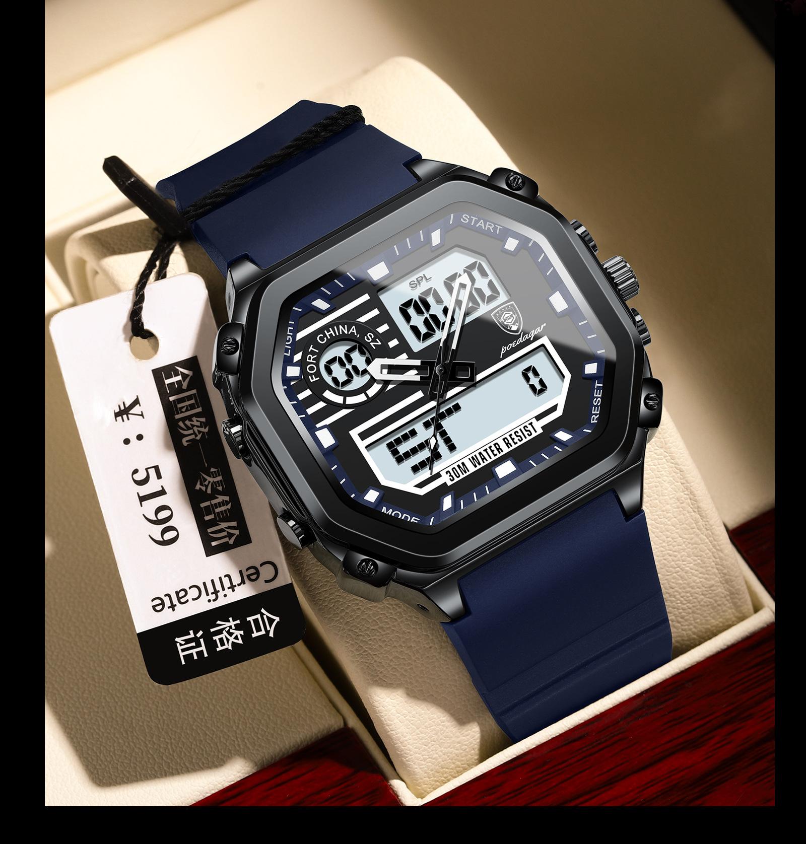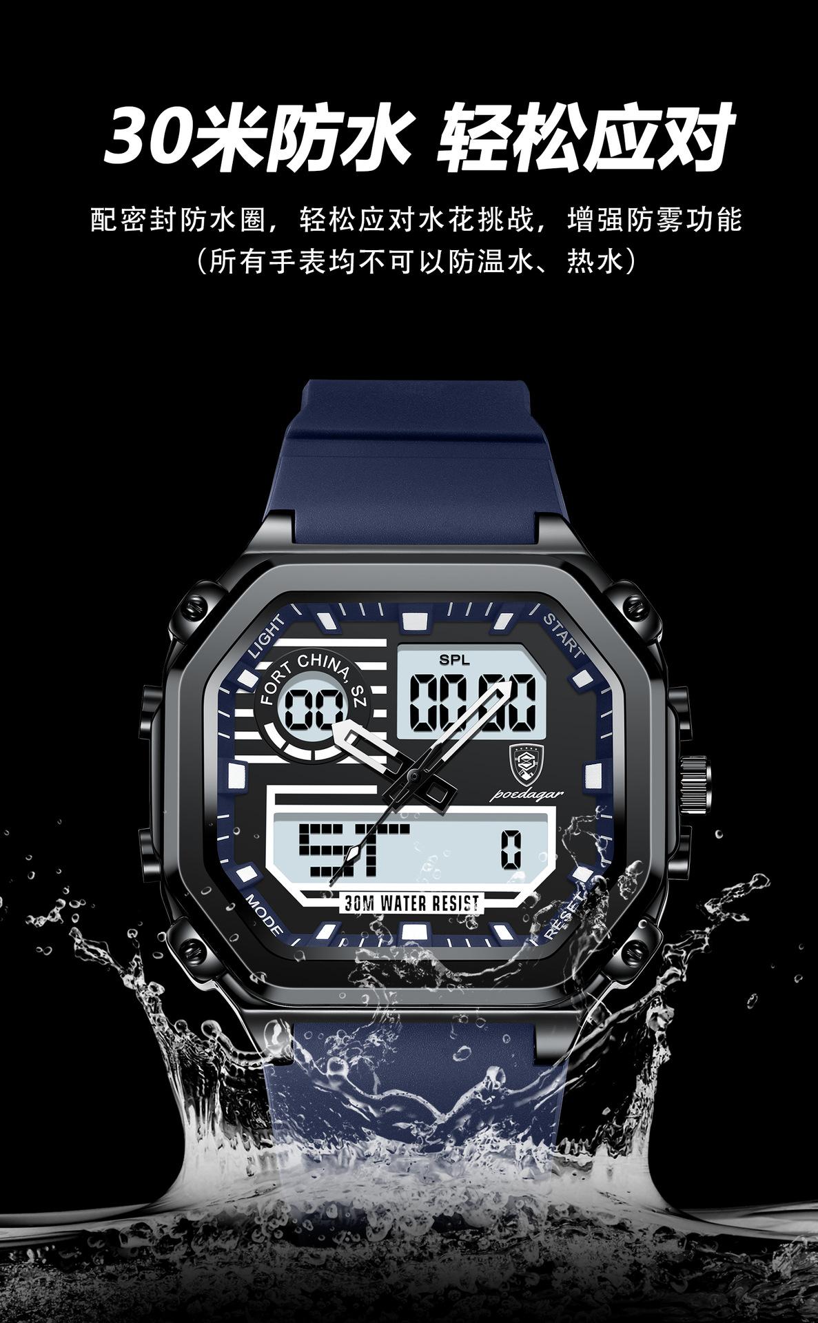 Relógio masculino multifuncional de marca suíça, relógio eletrônico com display duplo, explosões, estudantes ao vivo, explosões de comércio exterior, uma geração de cabelo