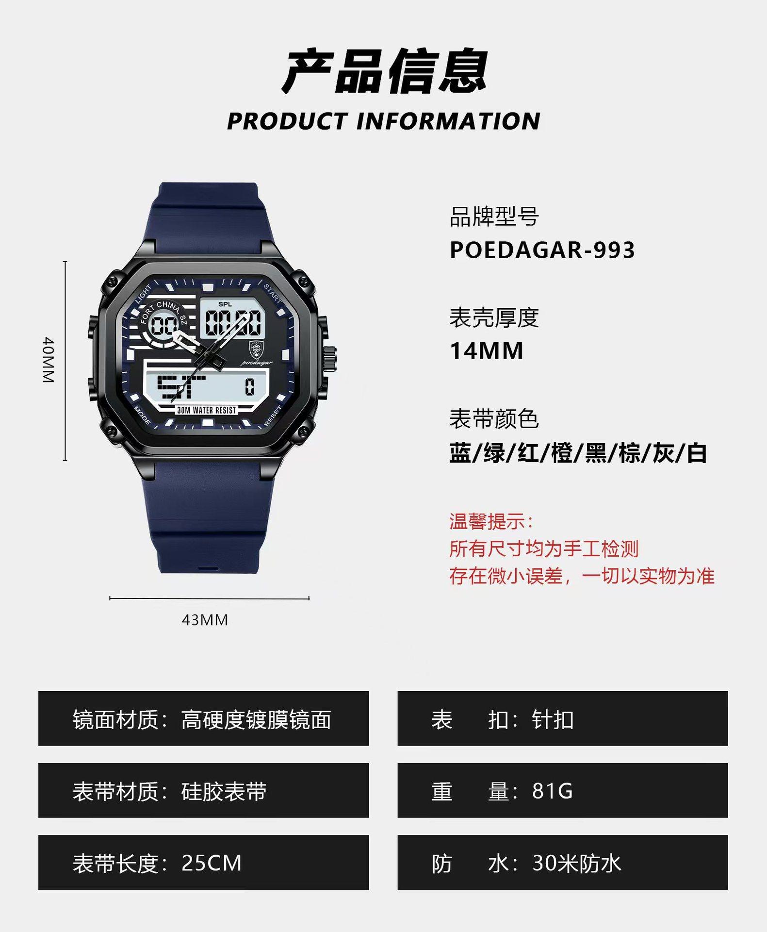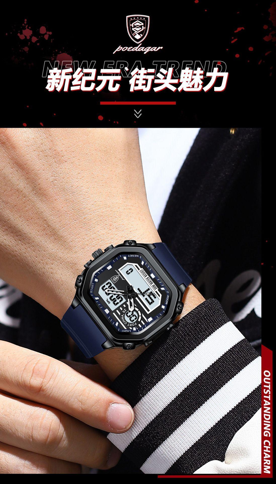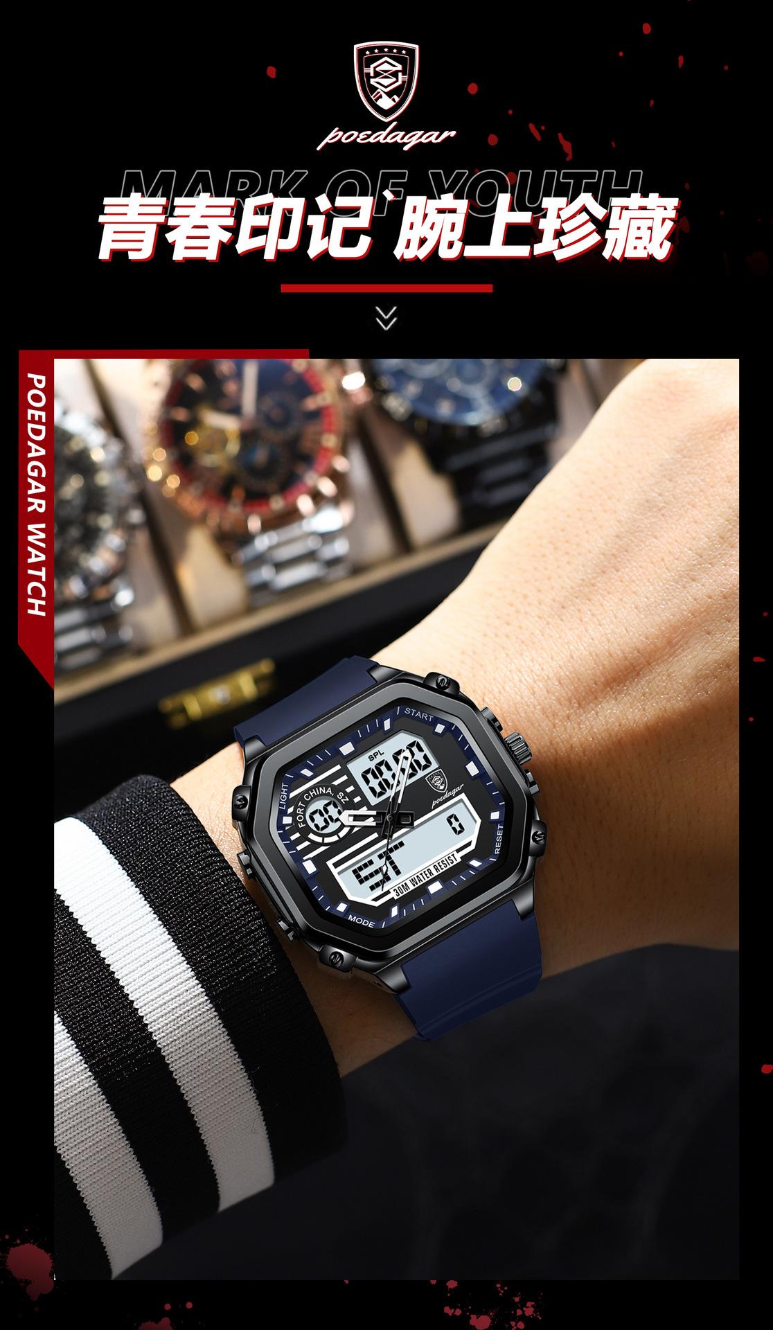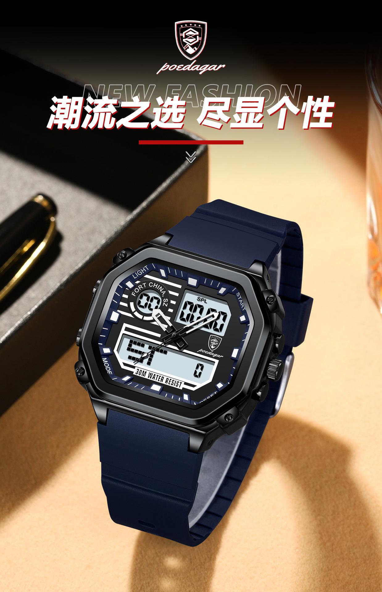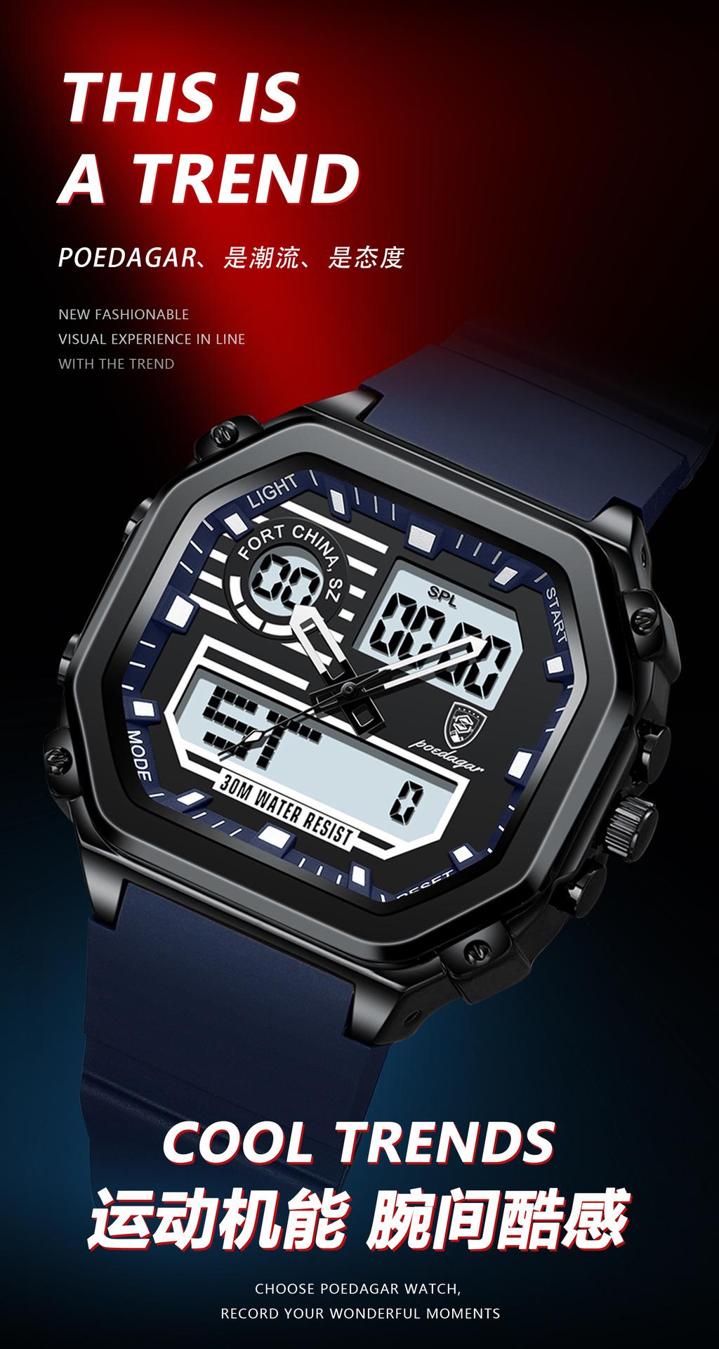 Relógio masculino multifuncional de marca suíça, relógio eletrônico com display duplo, explosões, estudantes ao vivo, explosões de comércio exterior, uma geração de cabelo
