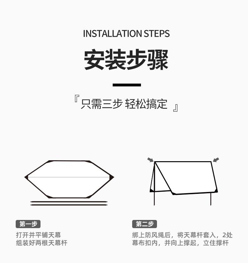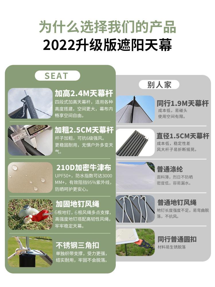Tenda de borracha preta para acampamento ao ar livre, toldo portátil, piquenique de borboletas, equipamento de proteção solar à prova de chuva