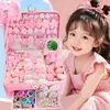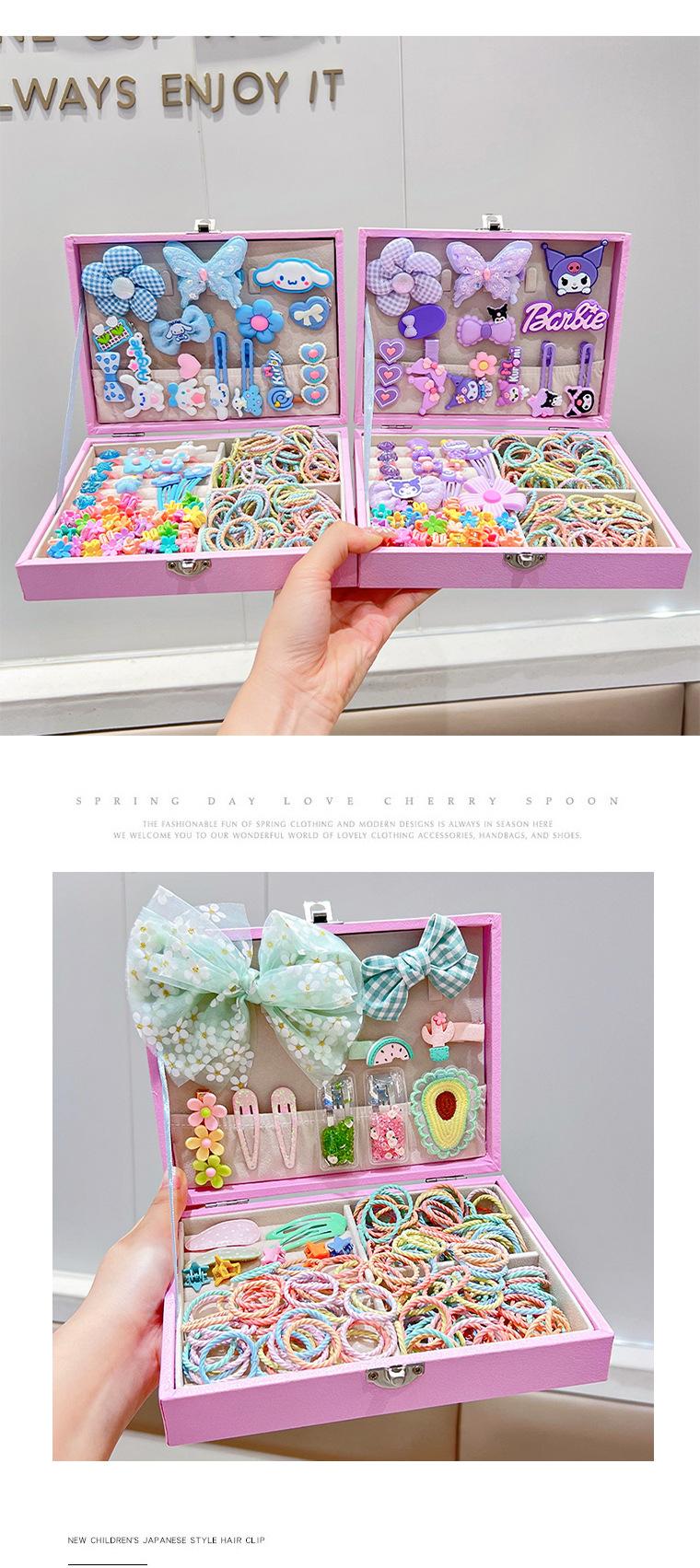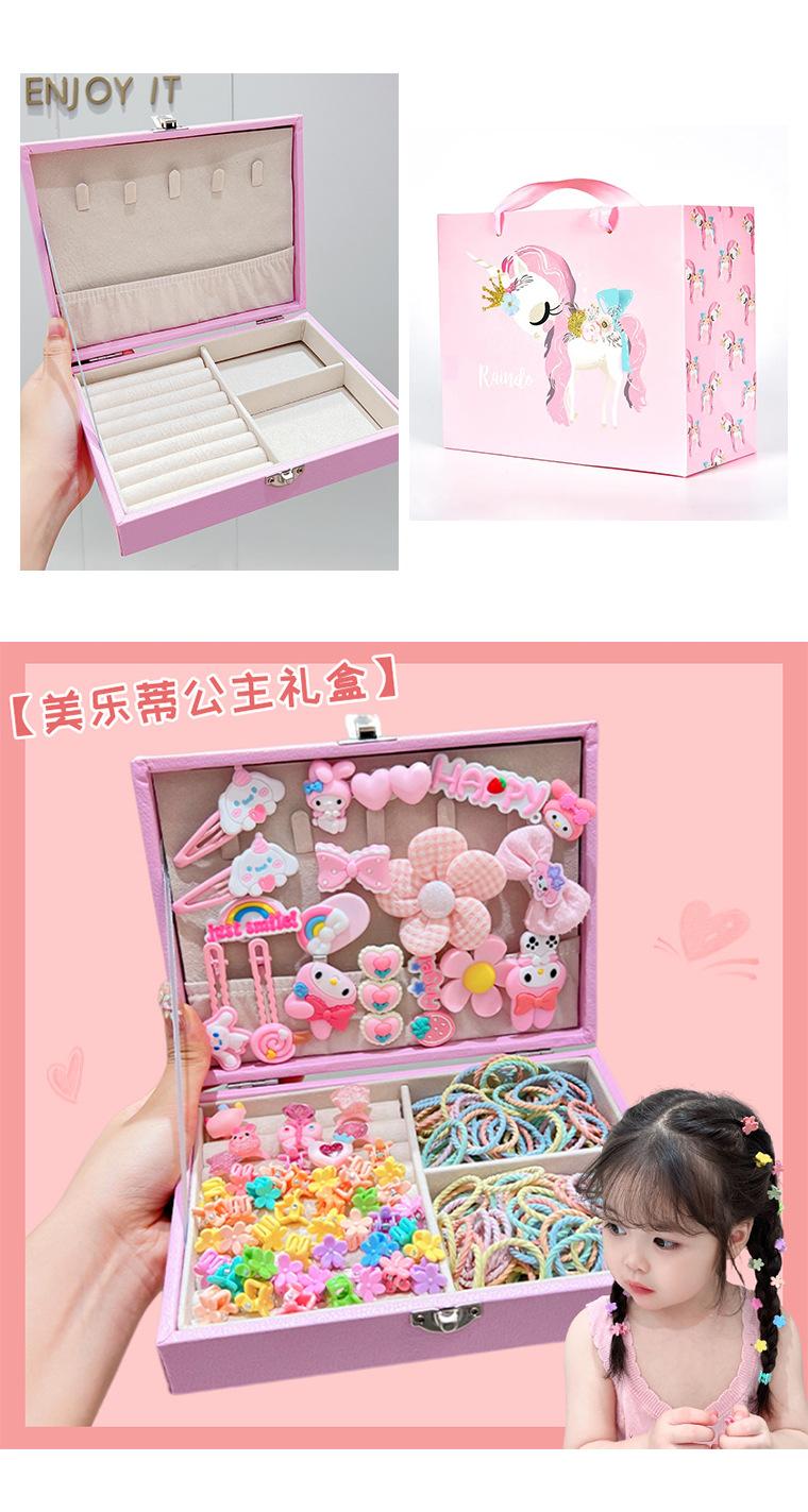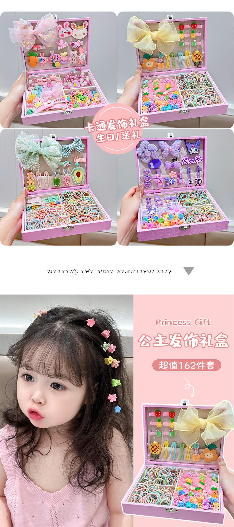 Acessórios para o cabelo das crianças conjunto caixa de presente meninas presente de aniversário hairpin elástico cocar pequena princesa caixa de jóias bonito atacado