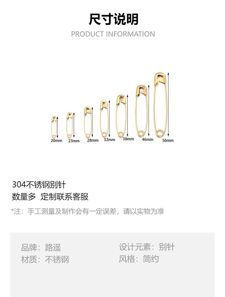Sem ferrugem pino de alta dureza 304 aço inoxidável agulha à prova d'água acessórios DIY broche de punho pino de segurança