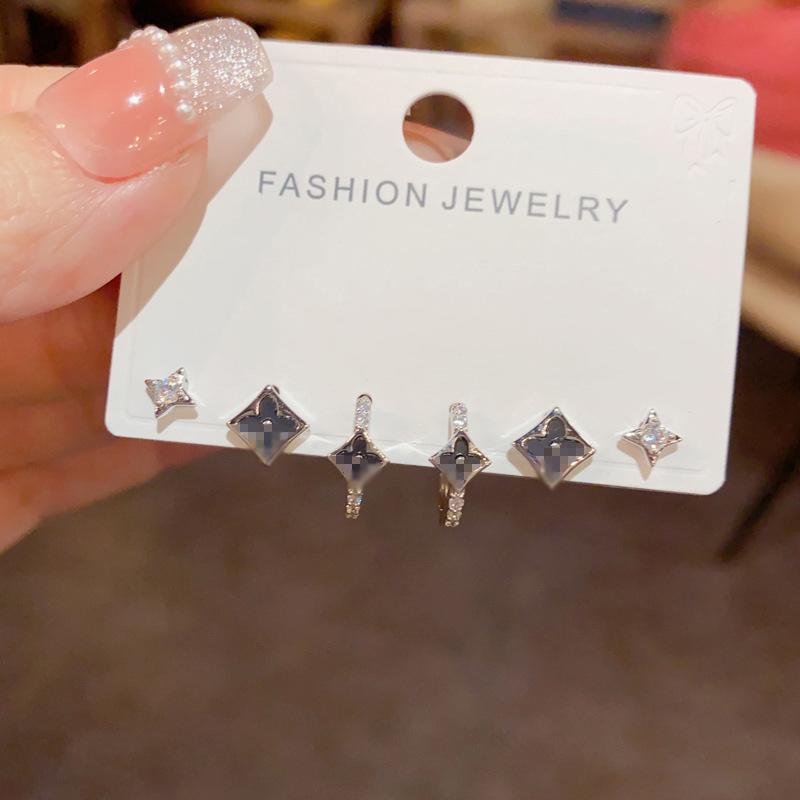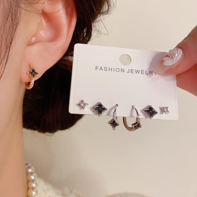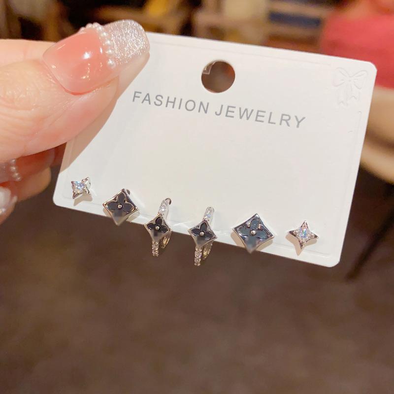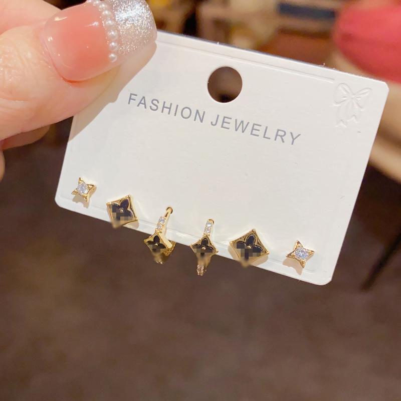 Compre Senso de design de moda de nicho terno combinado flor de quatro pétalas fivela de orelha temperamento personalidade simples luxo brincos de alta qualidade atacado no atacado no Joom.pro