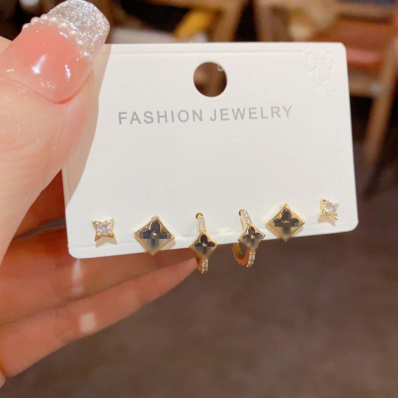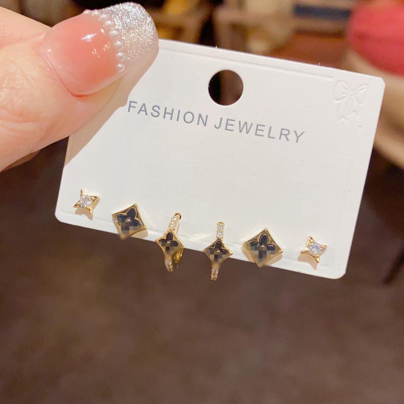 Senso de design de moda de nicho terno combinado flor de quatro pétalas fivela de orelha temperamento personalidade simples luxo brincos de alta qualidade atacado