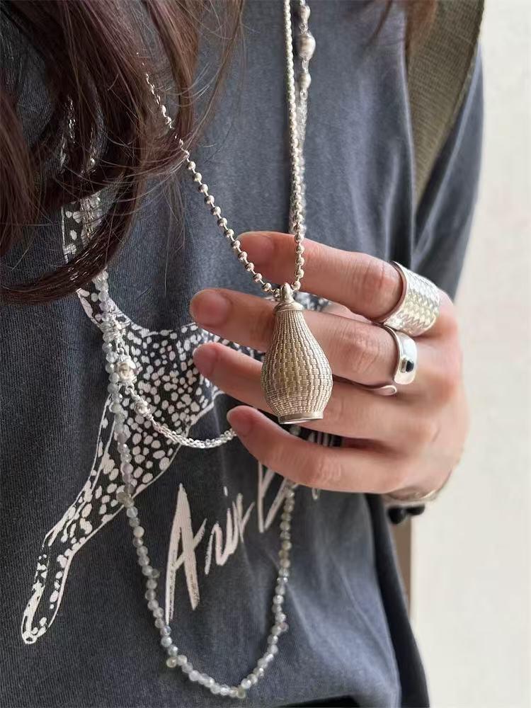 Colar de chaleira trançada com estilo Ins, corrente de feijão feminina, colar de nicho com corrente geométrica simples para viagem