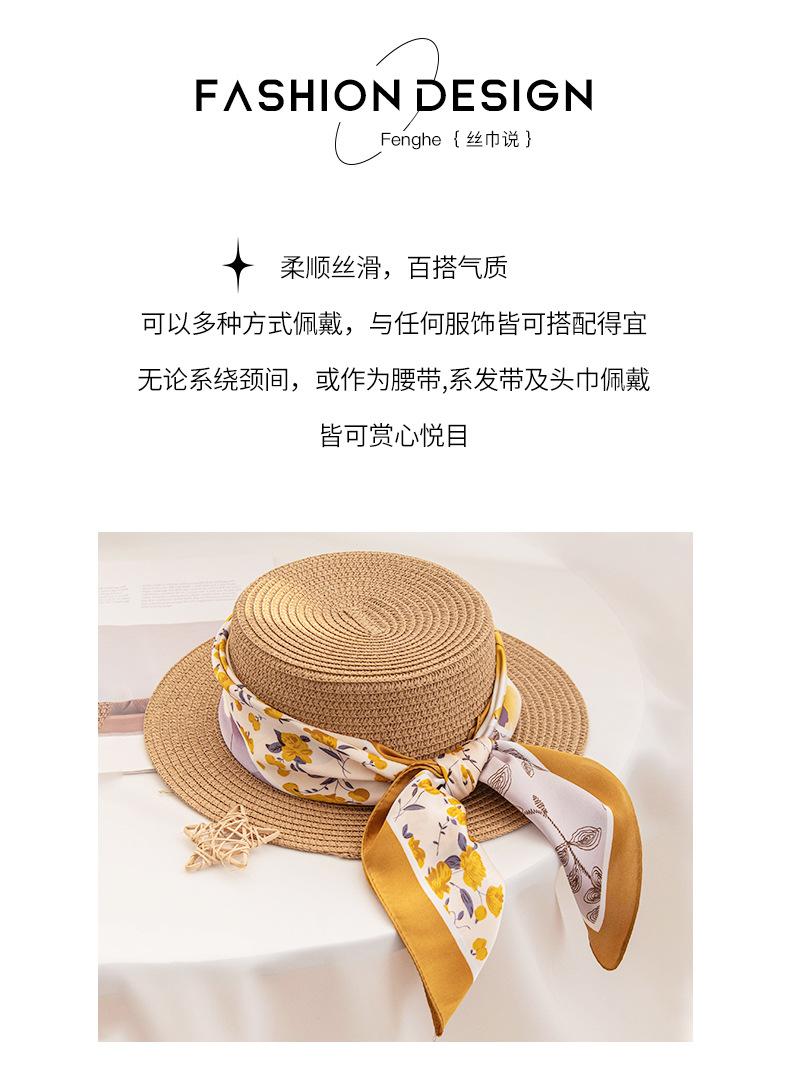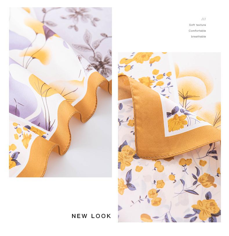 Estilo coreano novo pequeno cachecol camélia estampado lenço de seda feminino gravata bolsa alça fita faixa de cabelo lenço quadrado decoração