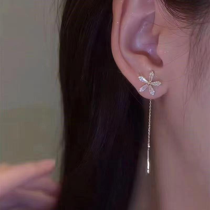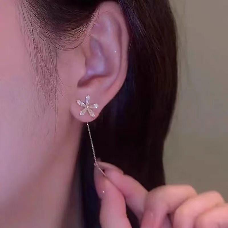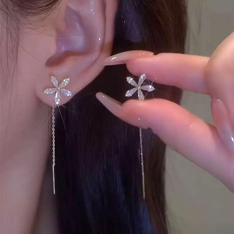 Brincos de orelha com borla longa e exclusiva de flor de gelo, estilo moderno e luxuoso, joias compactas para mulheres, atacado