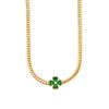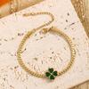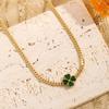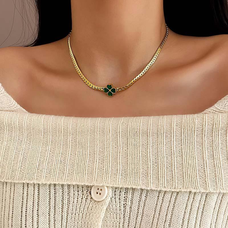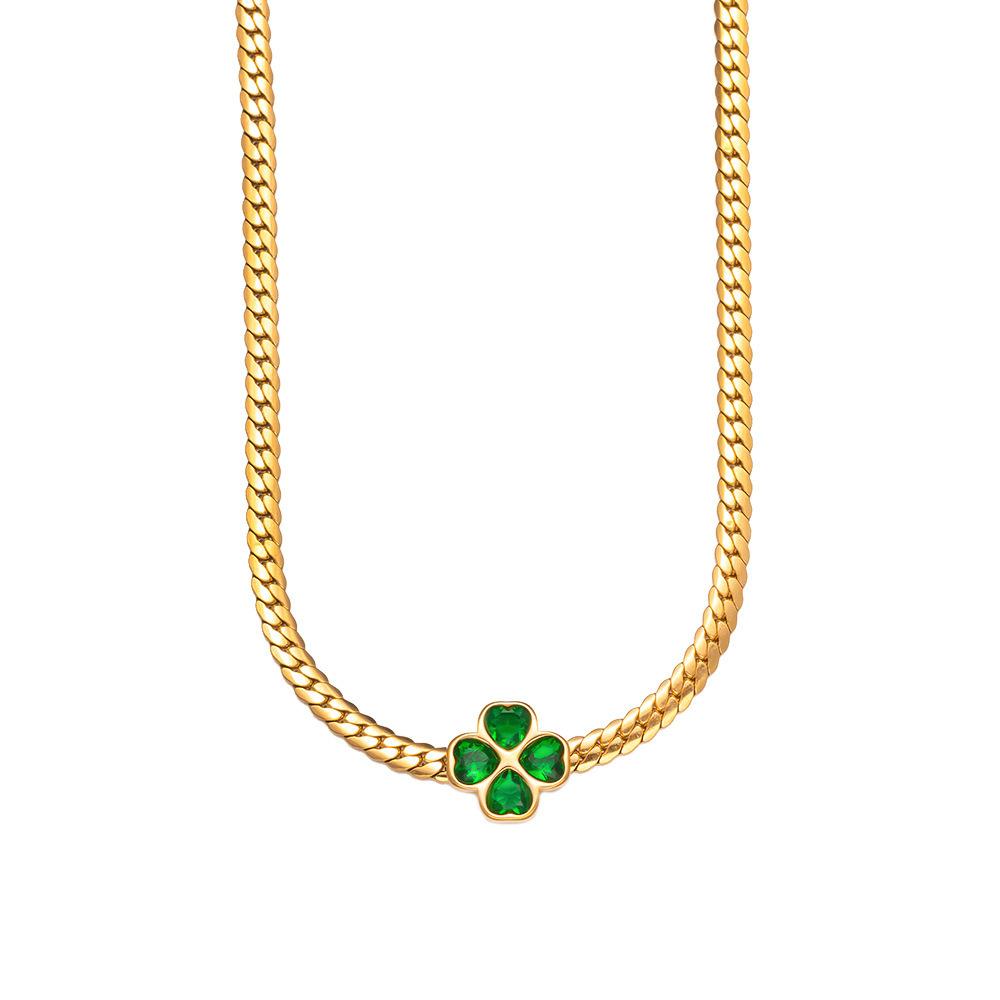 Pulseira de trevo de quatro folhas com zircônia esmeralda transfronteiriça europeia e americana, colar de clavícula feminino, pulseira de aço de titânio combinando, colar sem cor e corrente