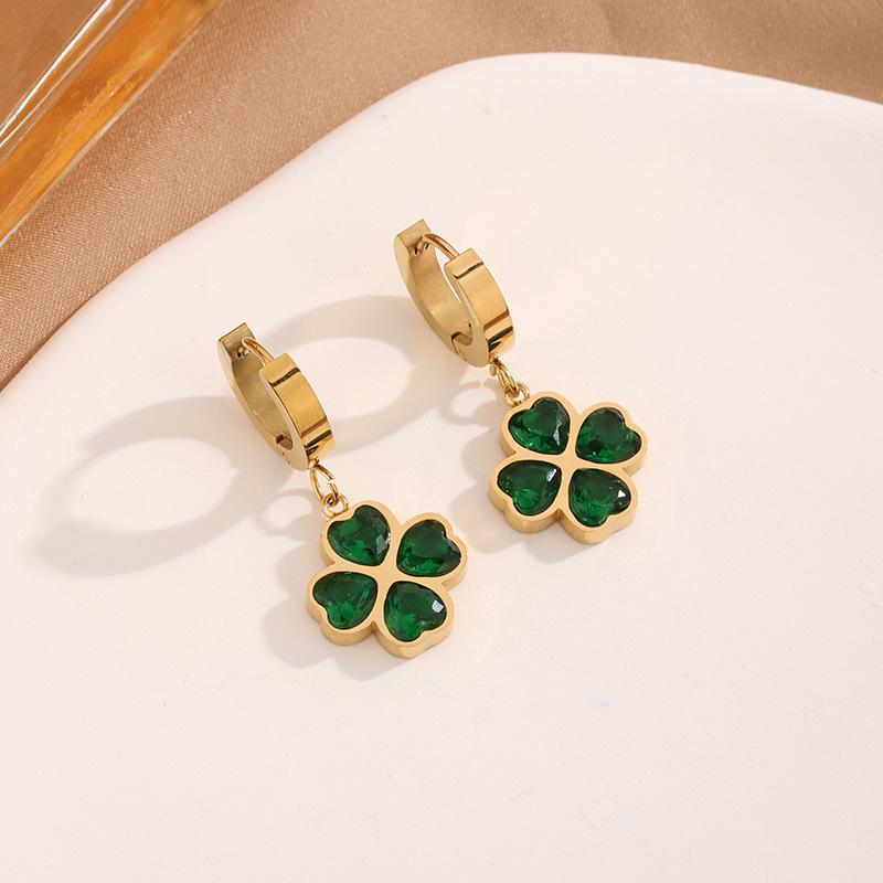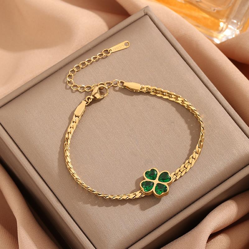 Compre Pulseira de trevo de quatro folhas com zircônia esmeralda transfronteiriça europeia e americana, colar de clavícula feminino, pulseira de aço de titânio combinando, colar sem cor e corrente no atacado no Joom.pro