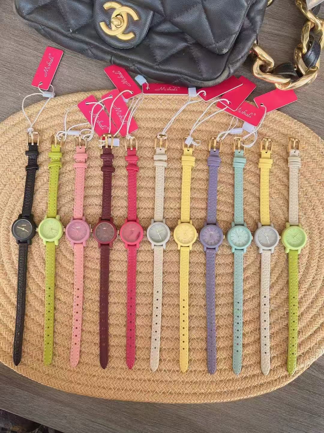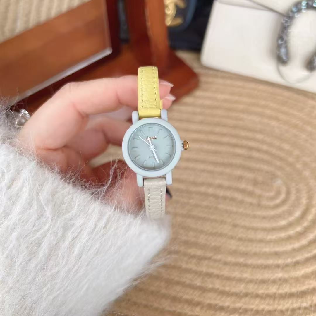 Relógio Vintage Pequeno e Exquisito com Mostrador Pequeno Feminino Verão Dopamina Colorido Nicho Estudante Simples Relógio de Pulseira