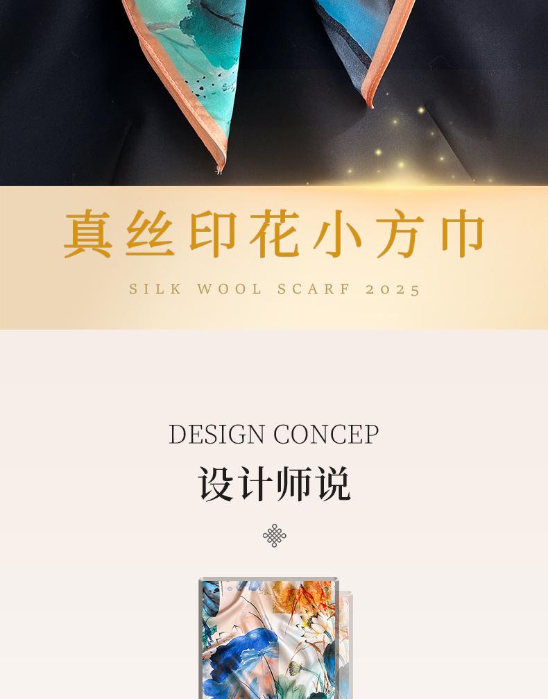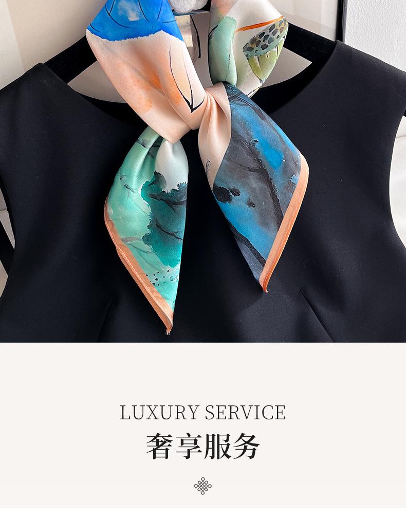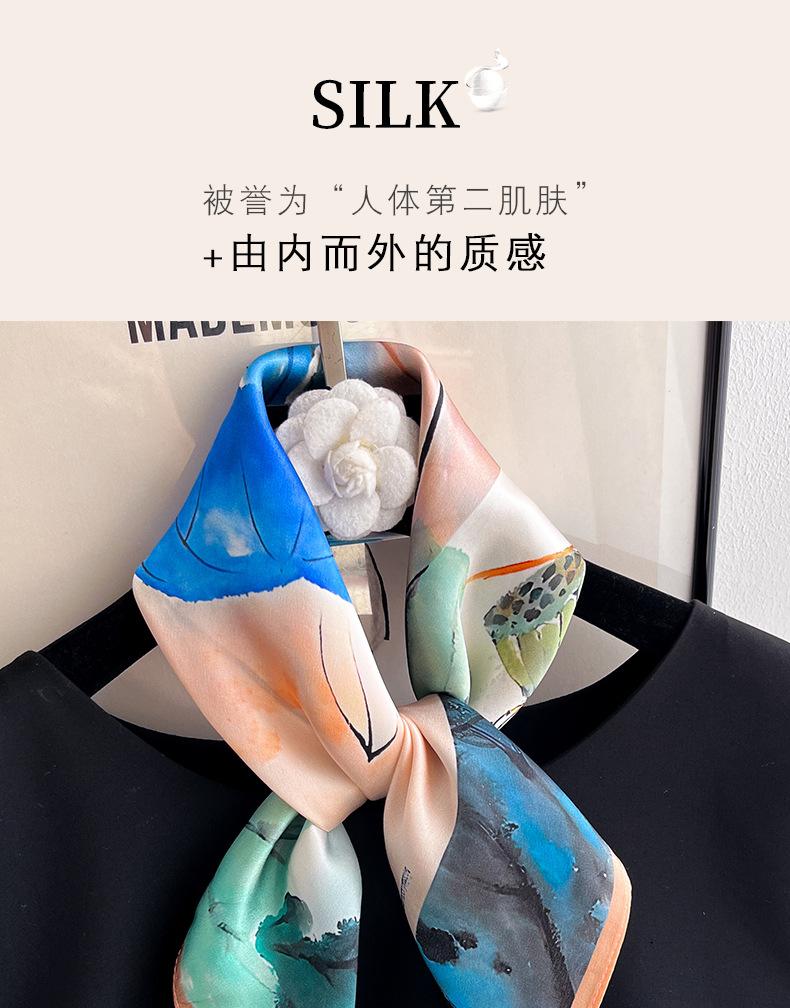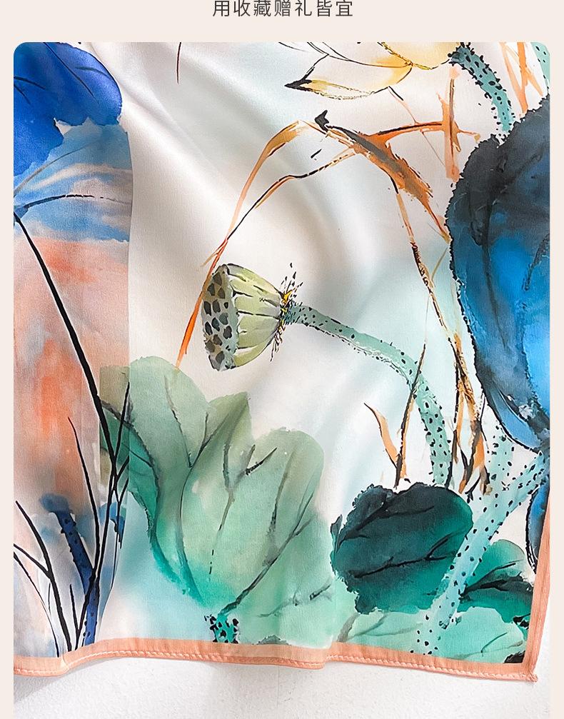 Cachecol de seda Hangzhou, cachecol de seda de amoreira, feminino, primavera, outono e inverno, proteção para o pescoço, cachecol para mãe, pintura a óleo, cachecol quadrado pequeno