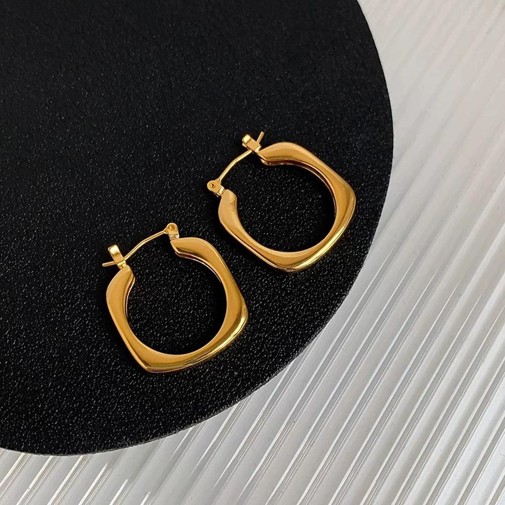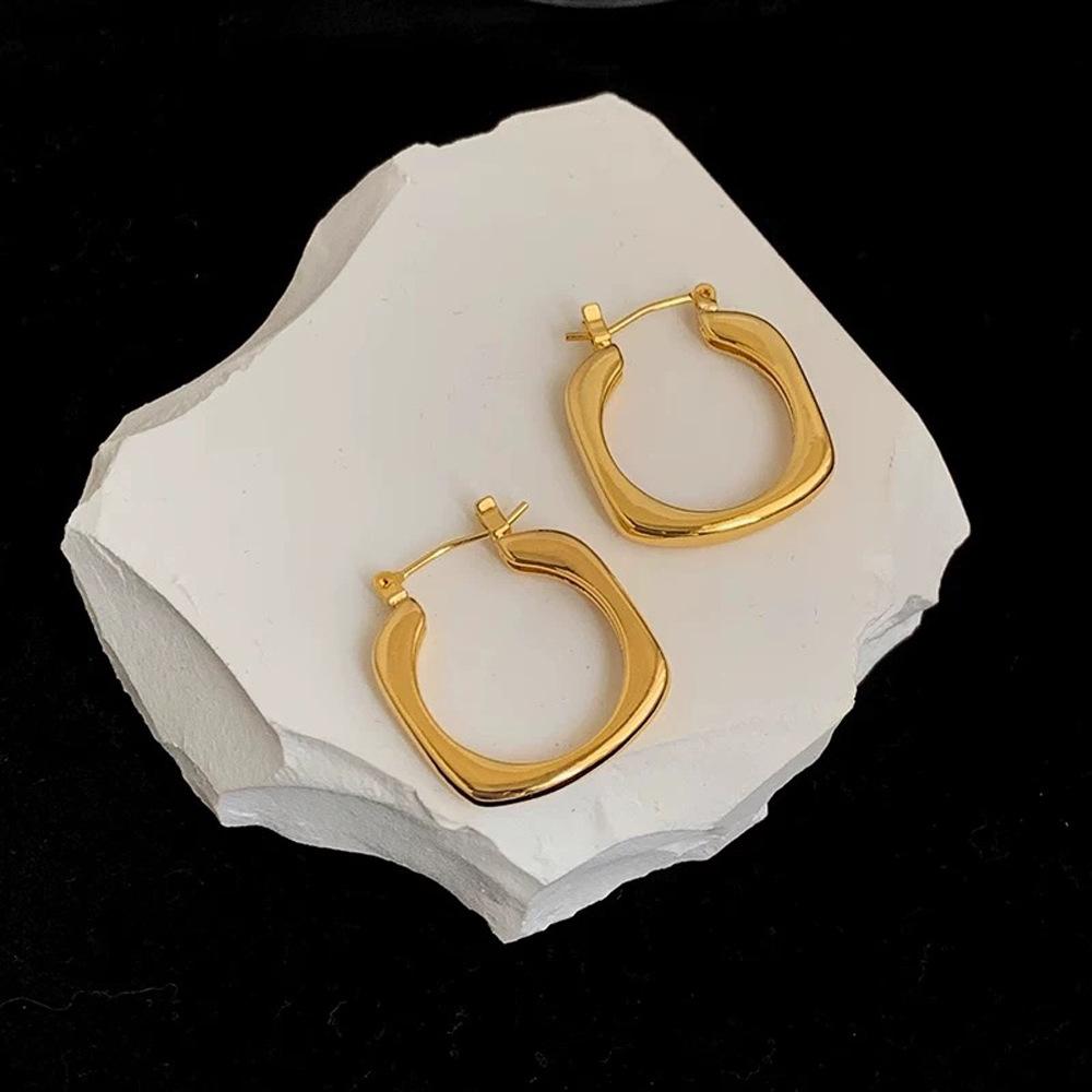 Brincos dourados lisos geométricos irregulares simples temperamento nicho design personalidade elegante versátil joias de orelha mulheres