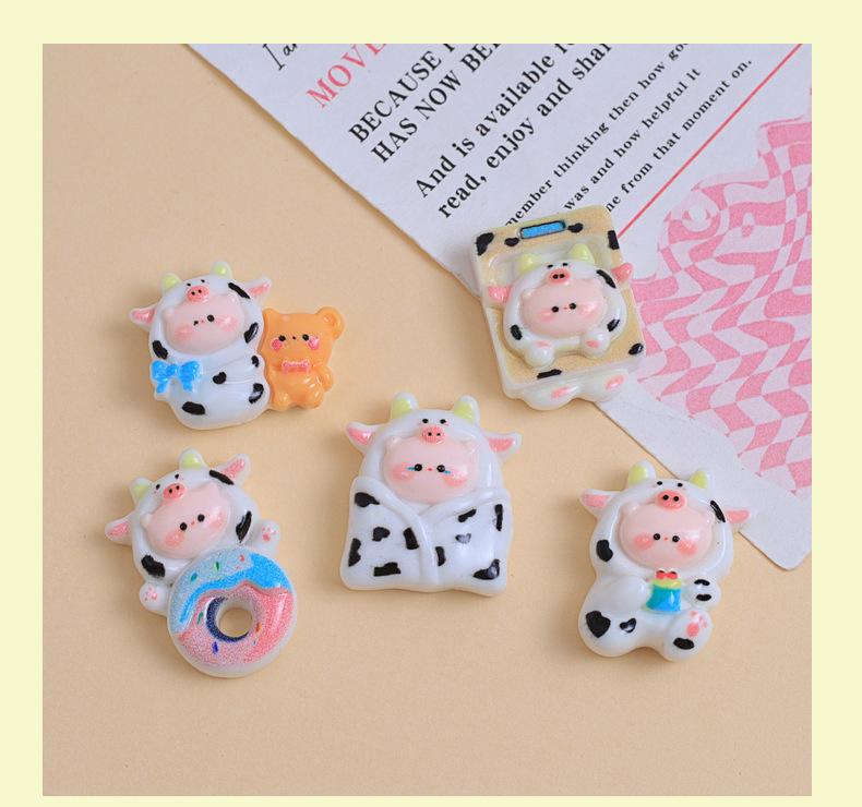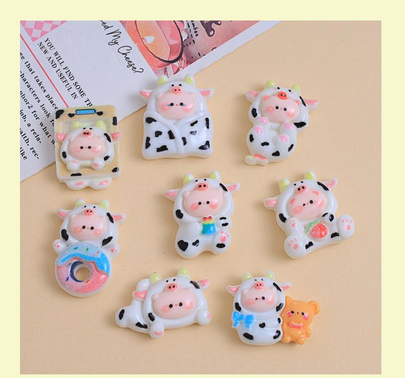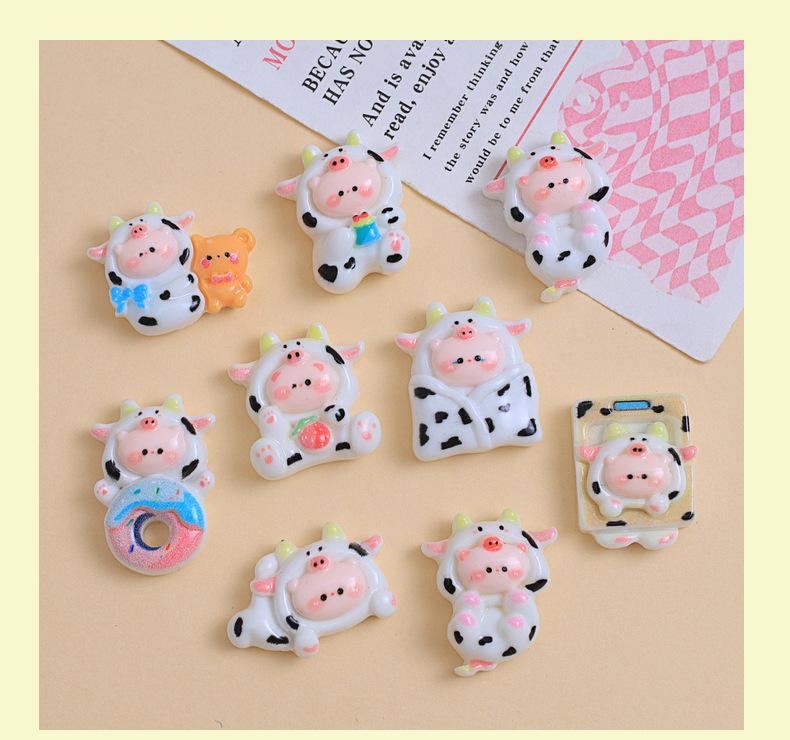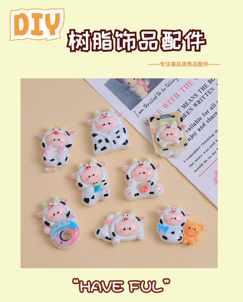 Desenho animado fofo de bebê vaca feito à mão faça você mesmo grampo de cabelo caseiro acessórios de cola de creme acessórios de resina acessórios de joias bolsa de material