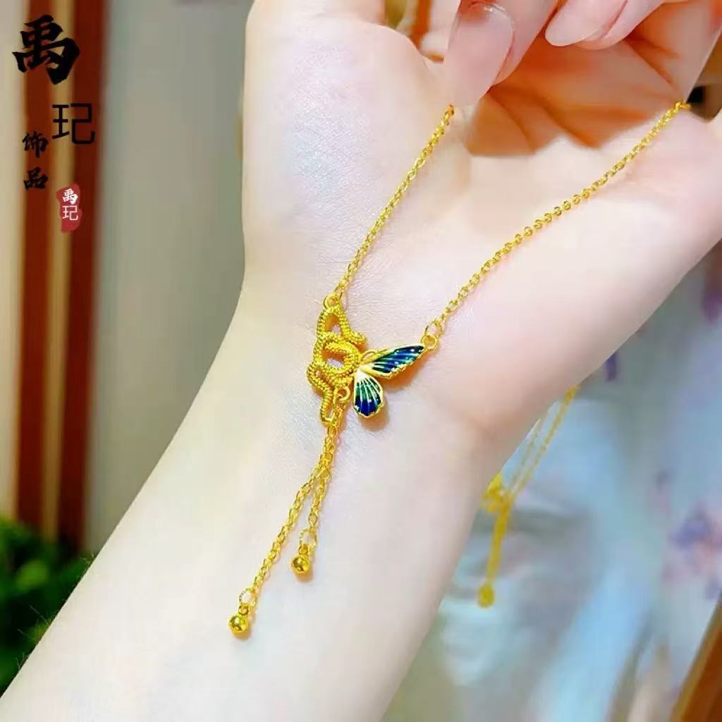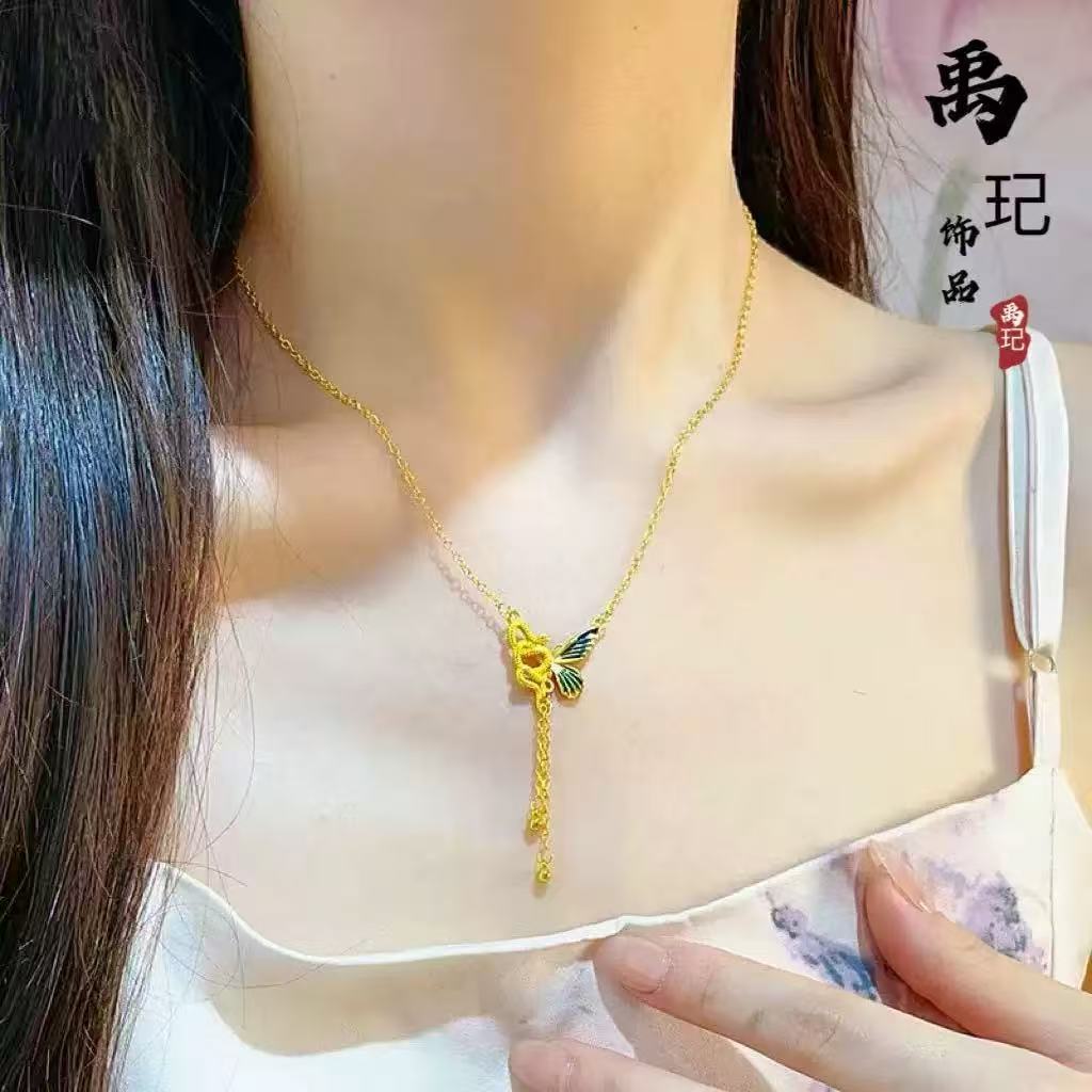 Loja de ouro com antigo colar de borla de cobra e borboleta de ouro de areia francesa, nova corrente de clavícula de tendência retrô chinesa para mulheres, atacado