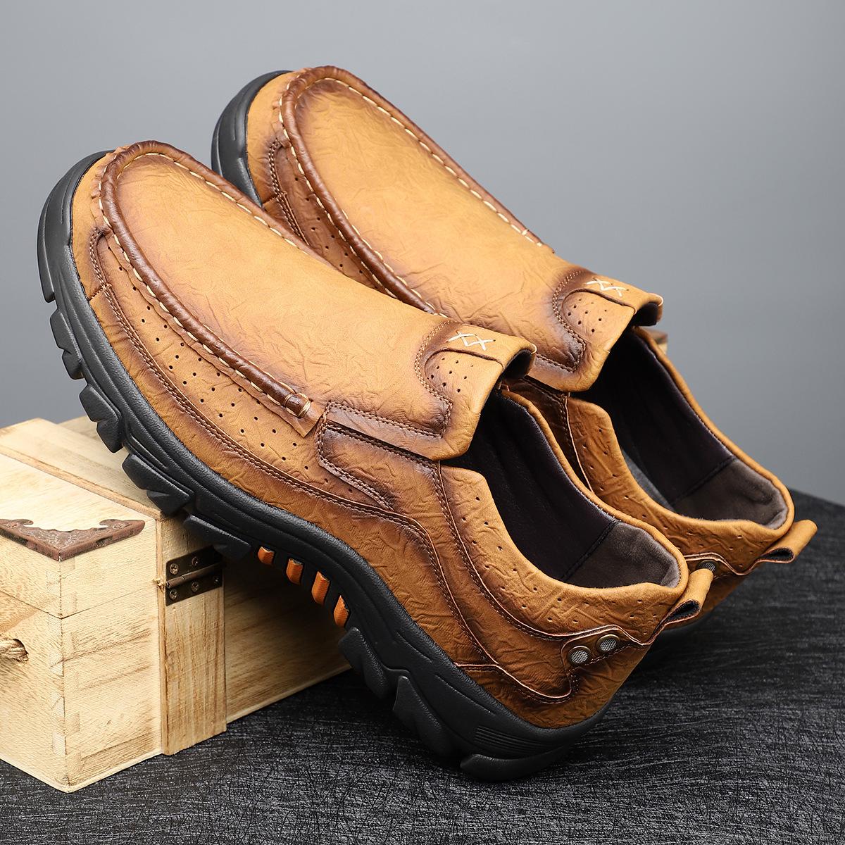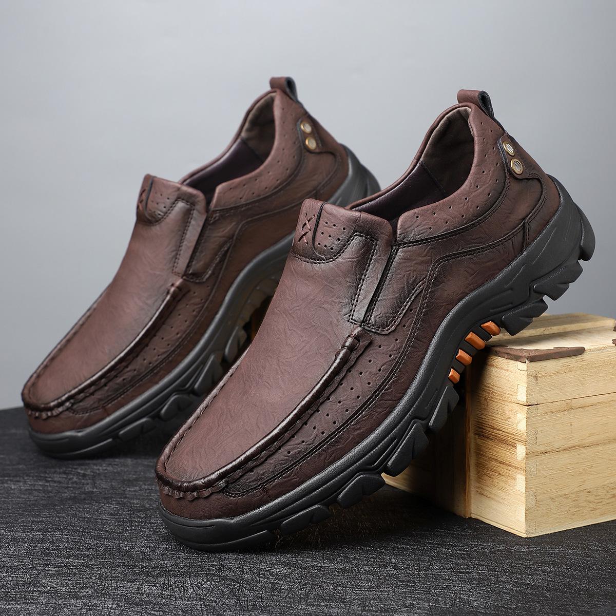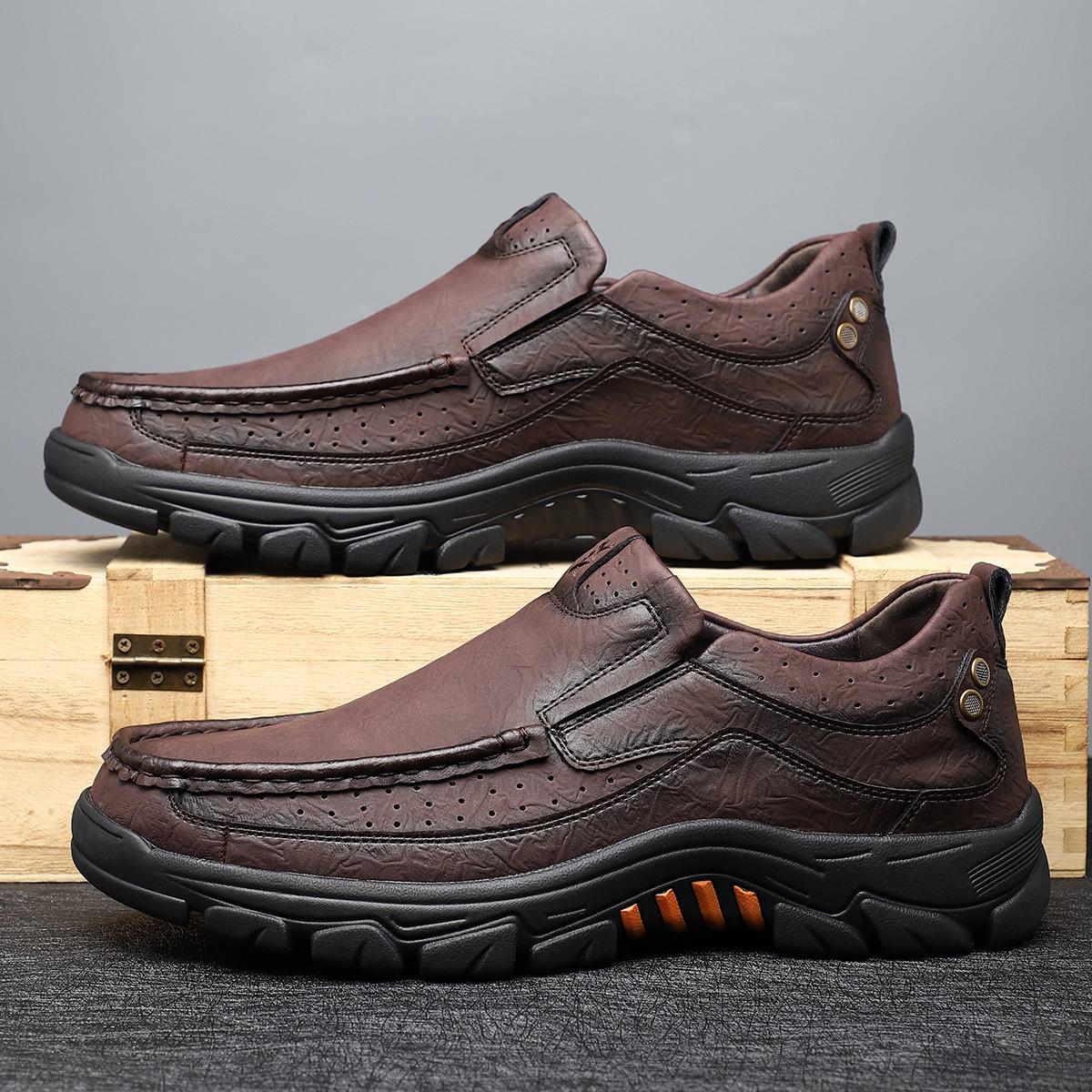 Novos sapatos masculinos de cano baixo, calçados casuais de couro para negócios, primavera e outono, calçados esportivos ao ar livre, calçados para montanhismo da moda, todos os tipos de combinação