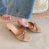 Sandálias elegantes estilo francês preguiçoso 2025, novas sandálias com salto baixo e laço, sapatos baixos de praia, sandálias abertas