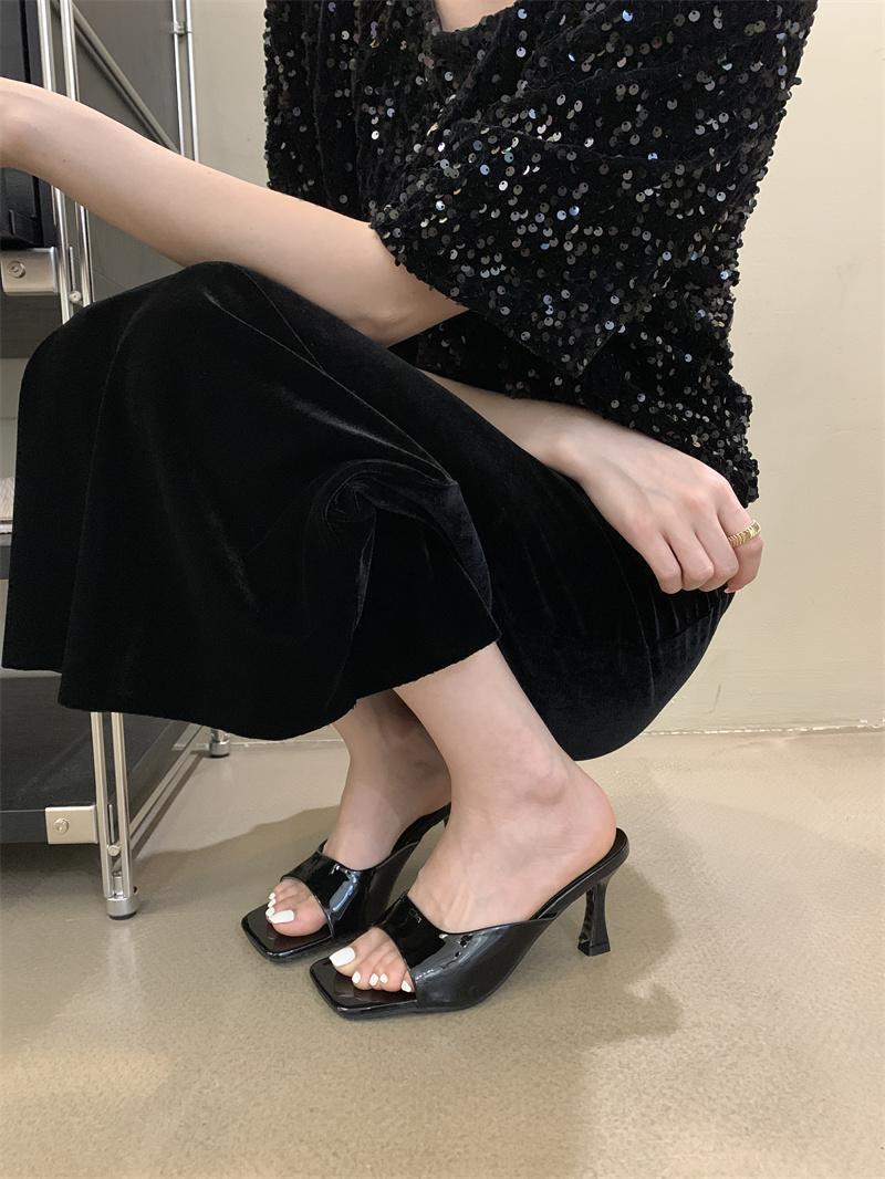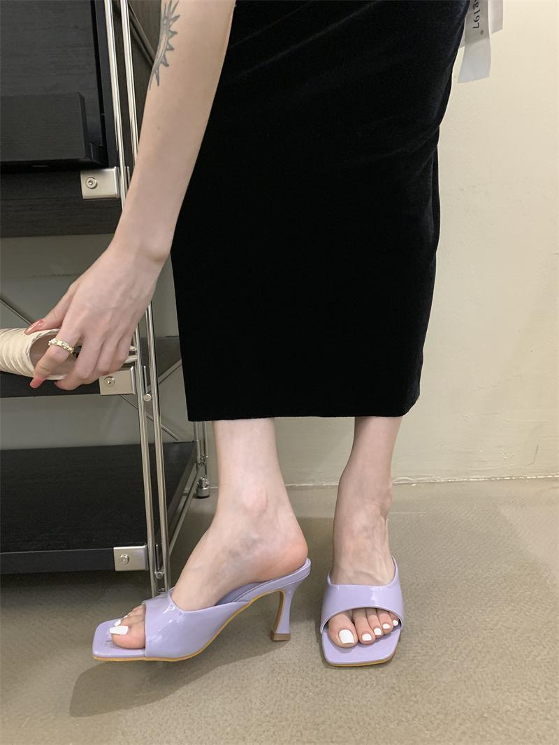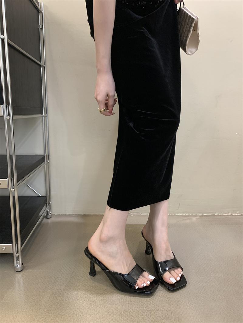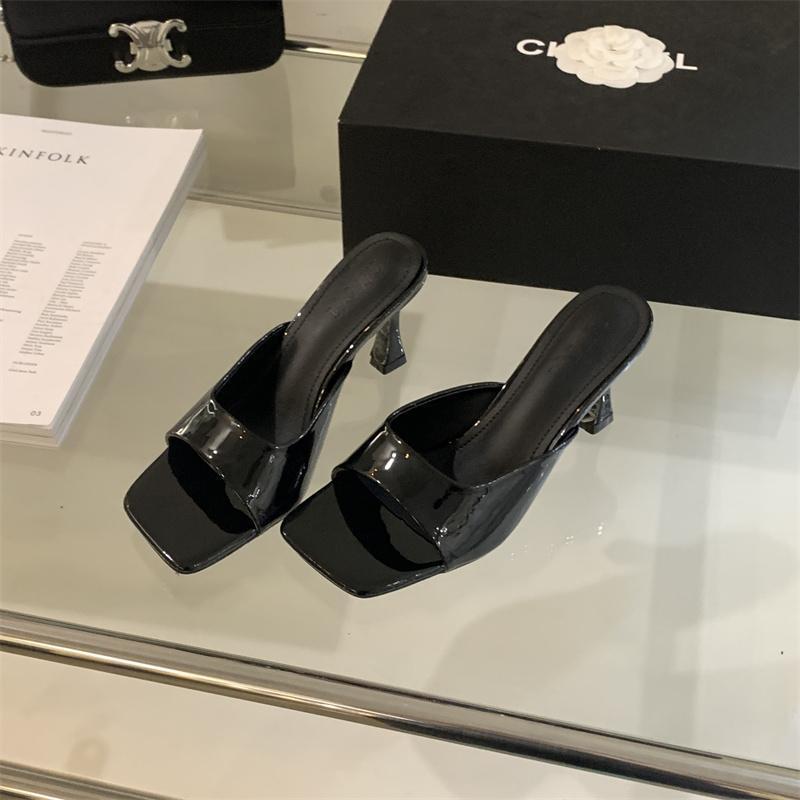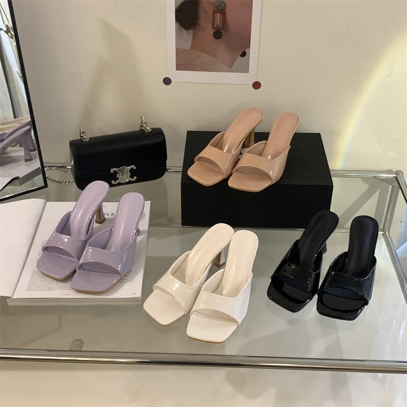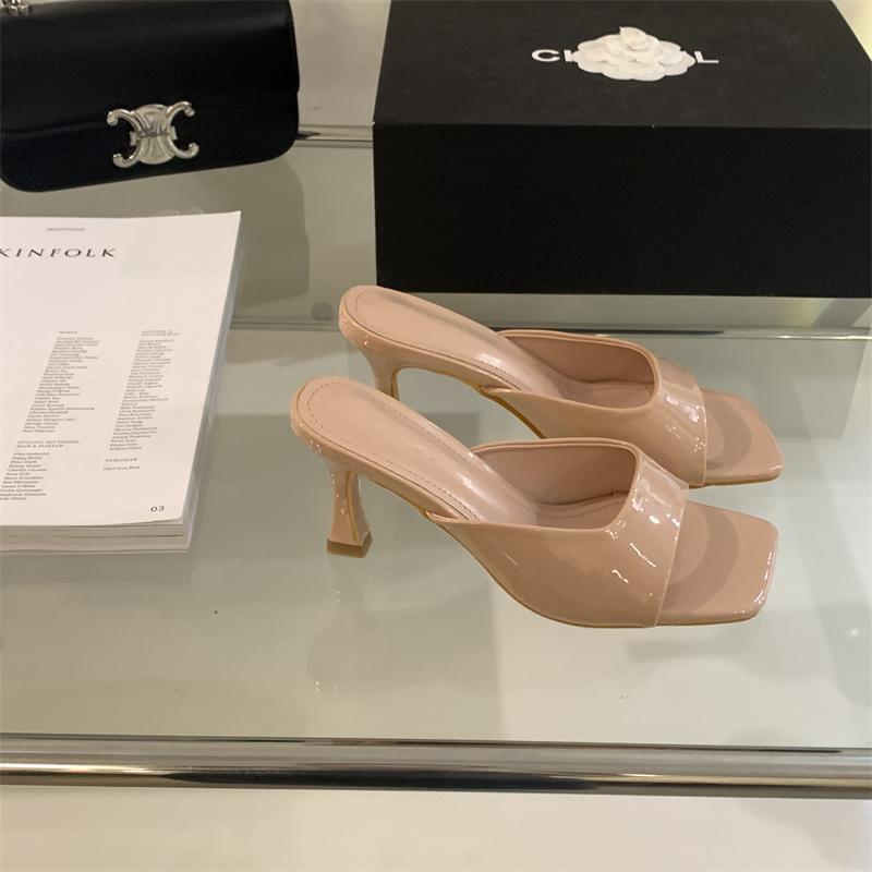 Compre Sandálias elegantes de salto alto 2024, novas sandálias de salto fino, bico quadrado, bico aberto, chinelos sensuais para uso externo no atacado no Joom.pro