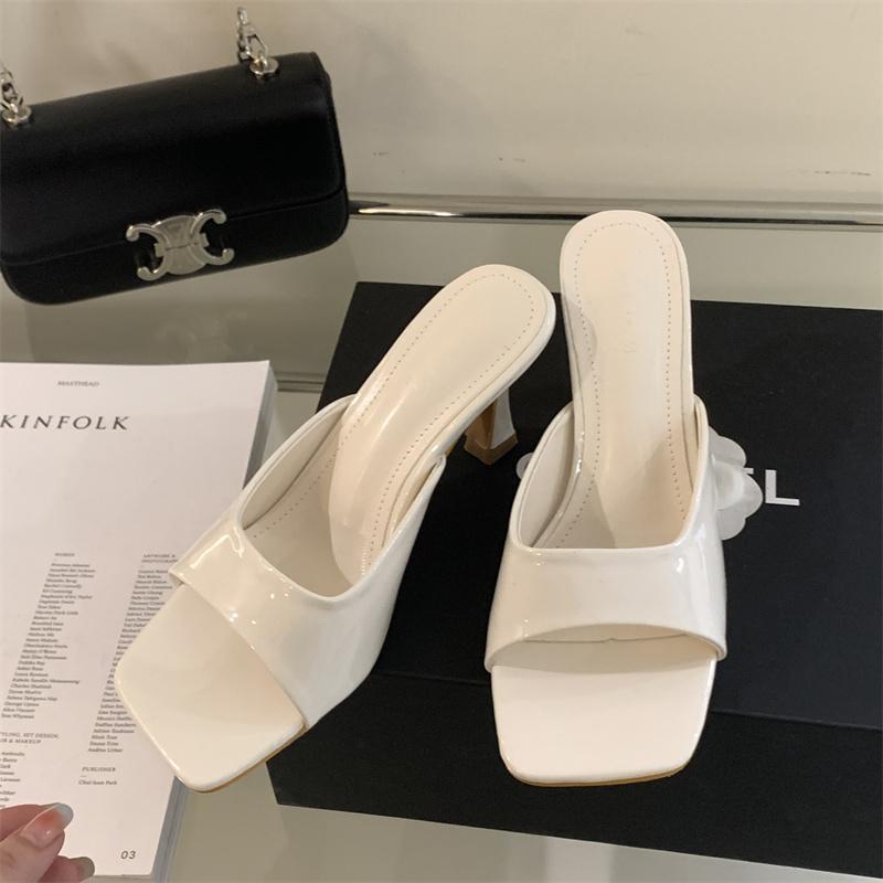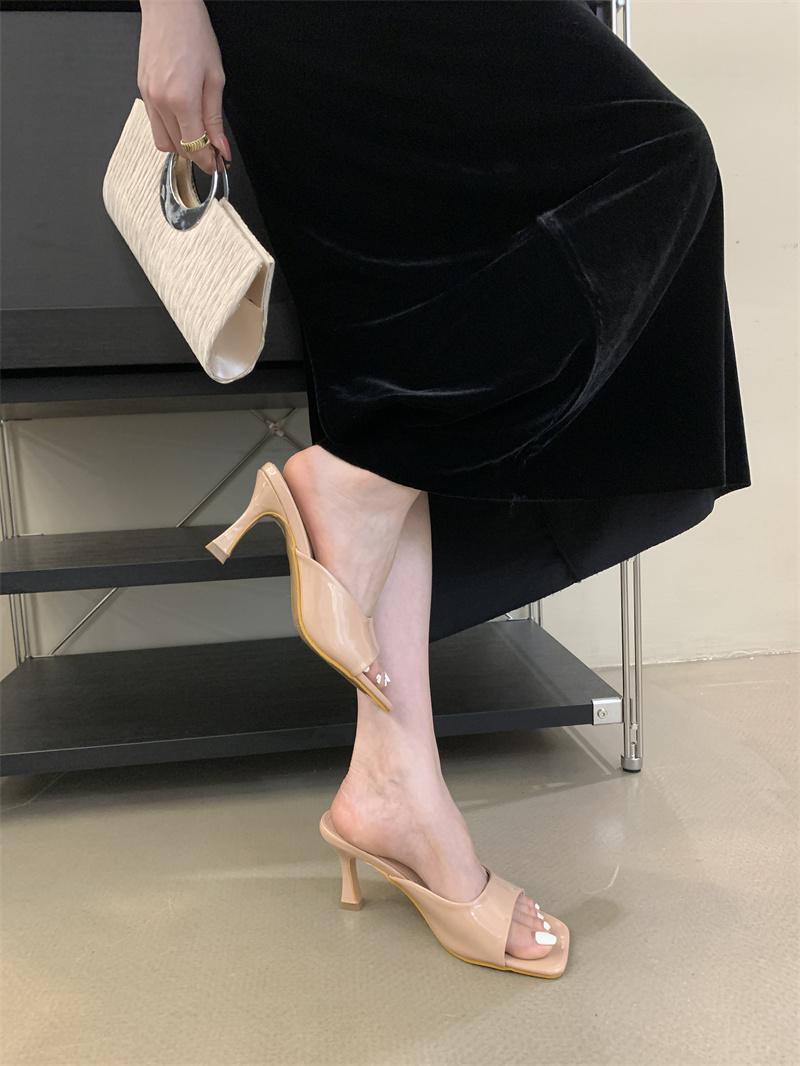 Sandálias elegantes de salto alto 2024, novas sandálias de salto fino, bico quadrado, bico aberto, chinelos sensuais para uso externo