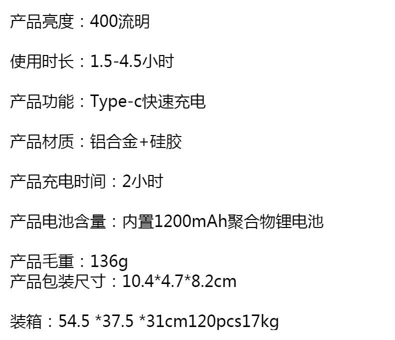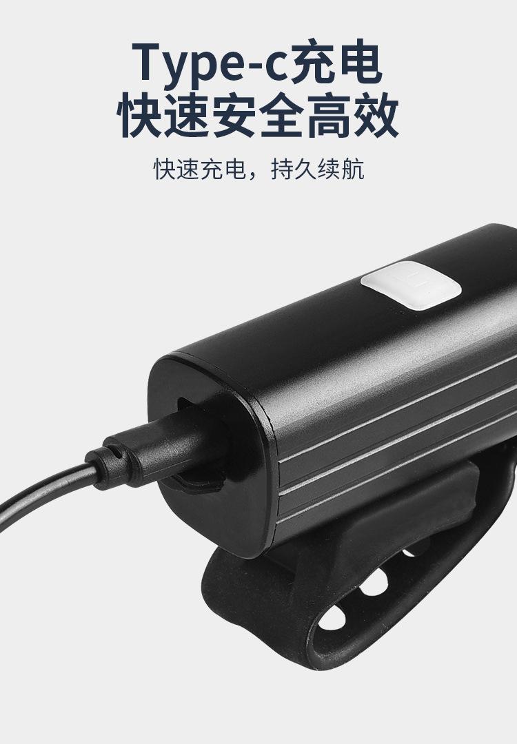 Luz de bicicleta transfronteiriça Tipo C, farol portátil de carregamento, mountain bike, passeio noturno ao ar livre, luz de advertência de comutação de quatro velocidades
