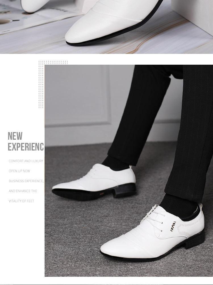 Sapatos de couro branco masculinos para negócios, sapatos de couro para primavera, novos, estilo britânico coreano, com cadarço, casuais, moda jovem, casamento