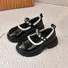 Sapatos de menina para crianças, sapatos de princesa de couro macio genuíno, novos sapatos de couro para meninas, primavera e outono, sola macia, sapatos pequenos de couro, pretos, camada única